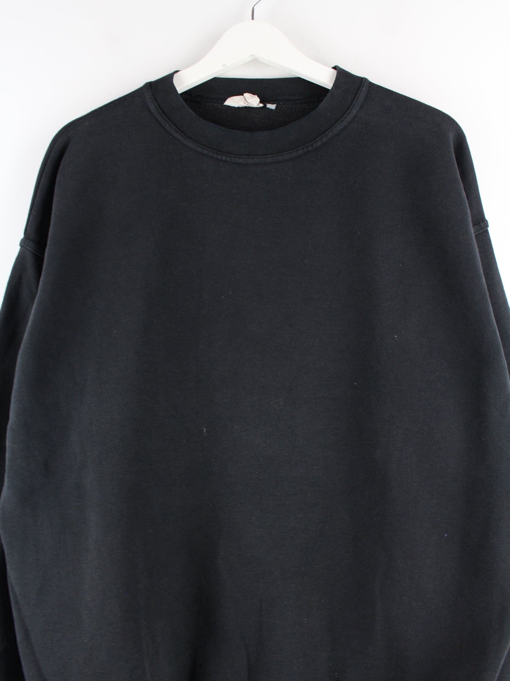Vintage Sweater in Größe L. Er ist aus einer Baumwollmischung angefertigt und in Schwarz bei uns vorrätig.