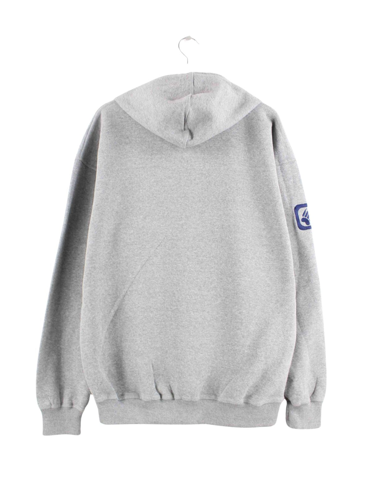 Grauer Vintage Hoodie mit gesticktem Logo in Größe XL. Er ist aus einer Baumwollmischung angefertigt und in sehr gutem Zustand vorrätig.