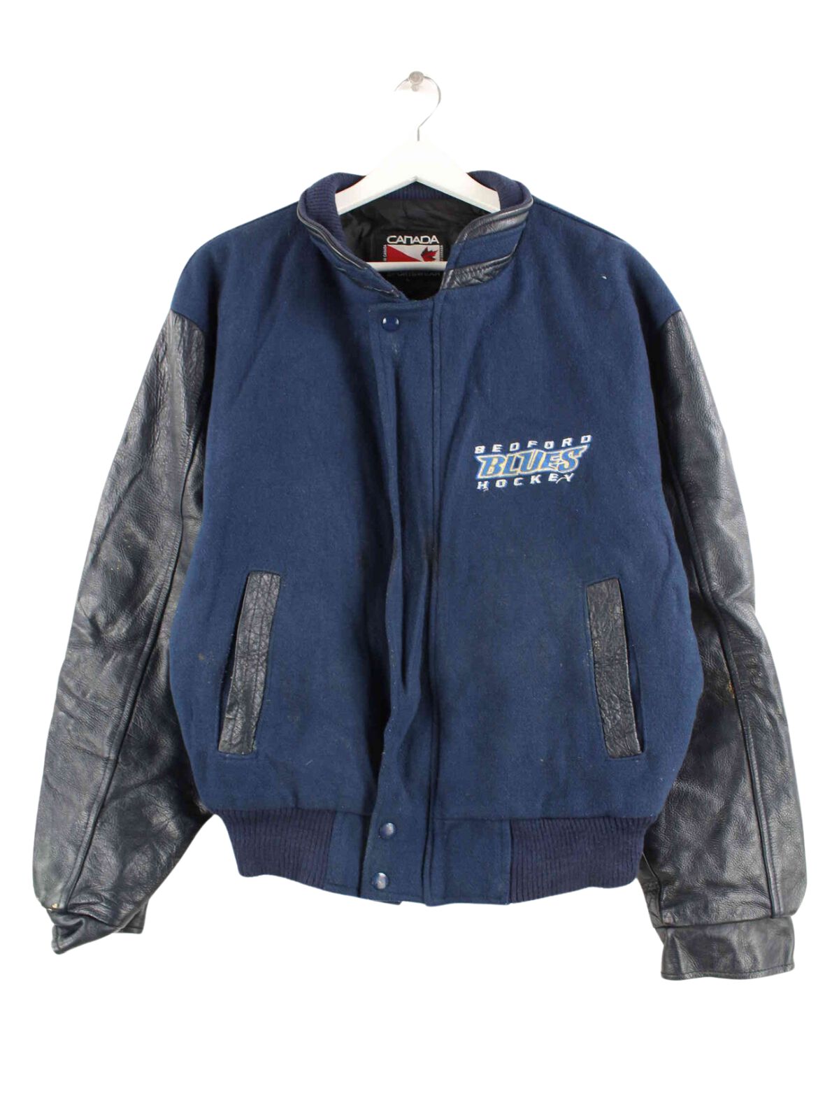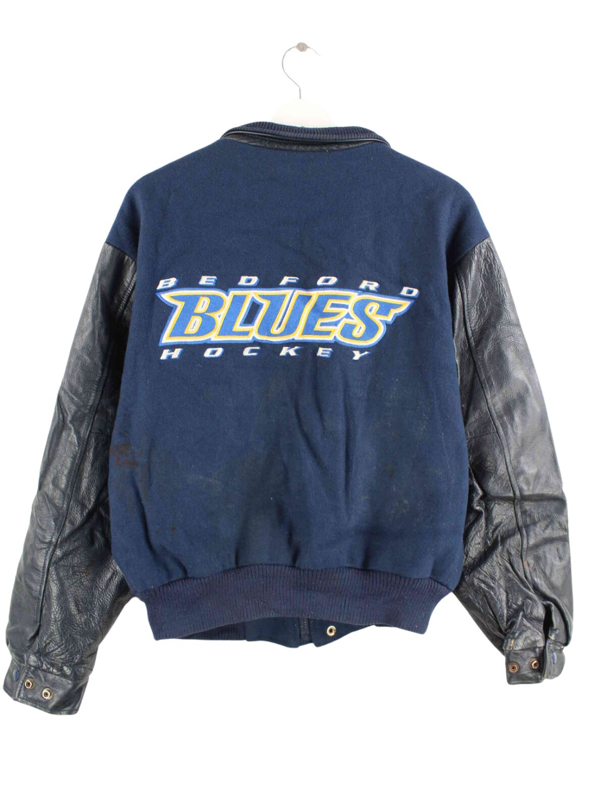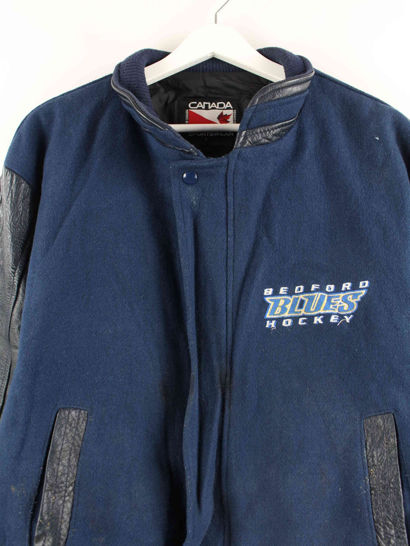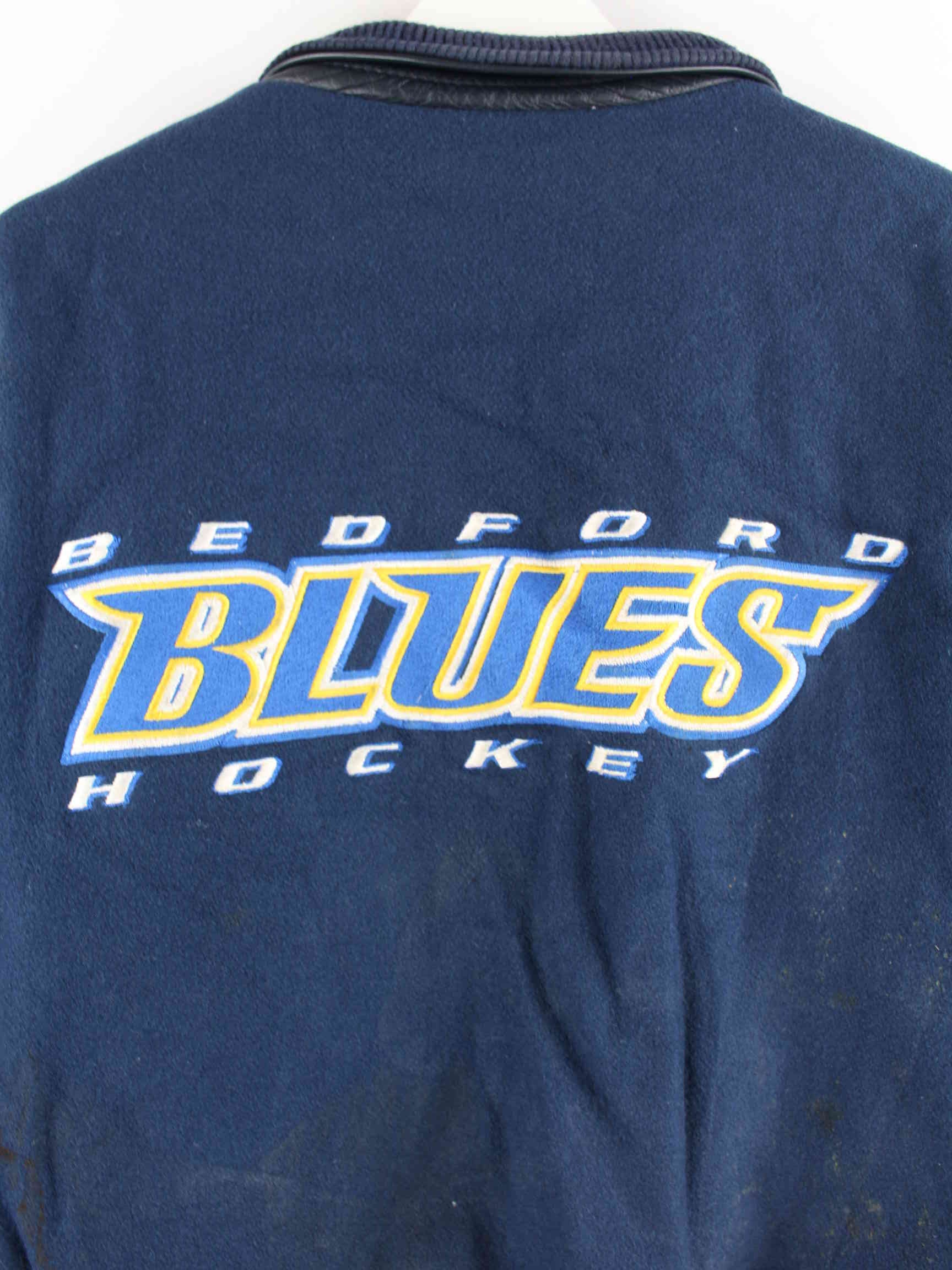 Vintage Bedford Blues Hockey Leder College Jacke Blau M