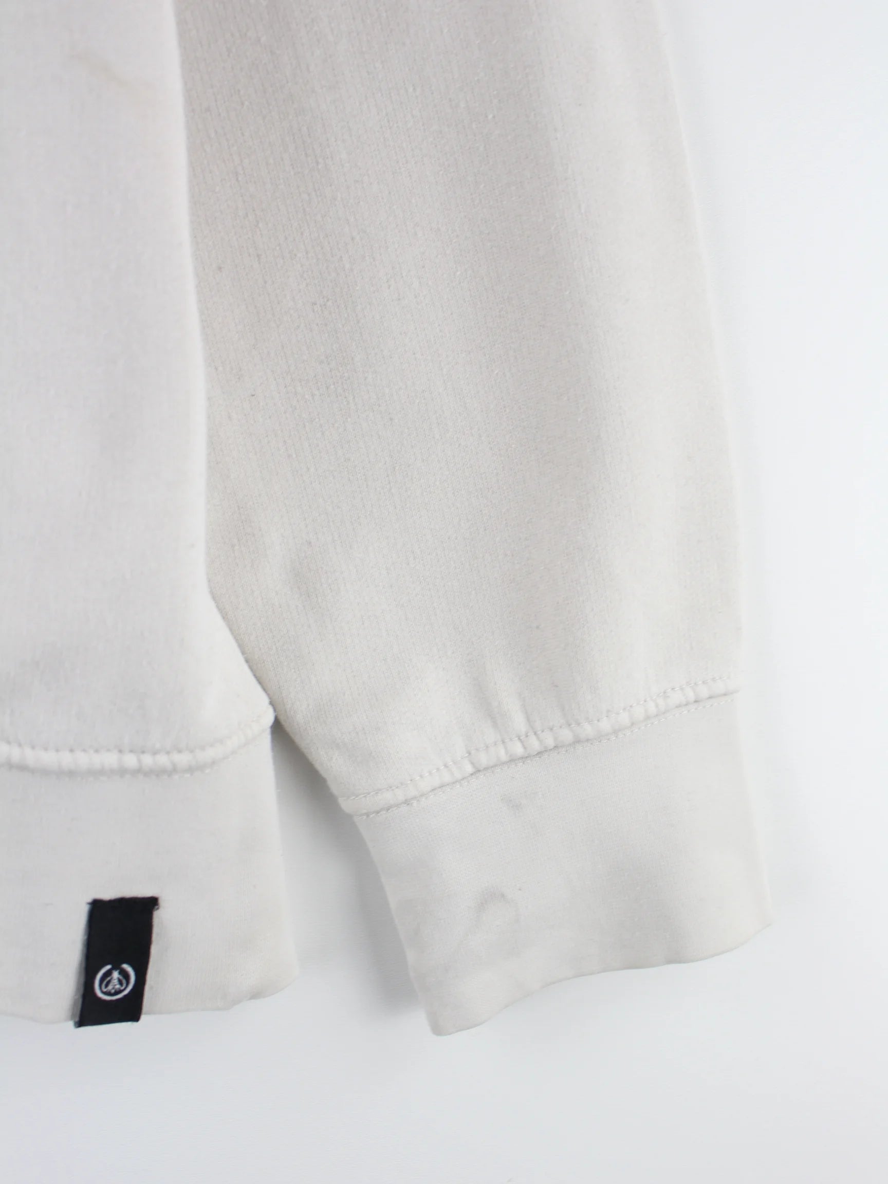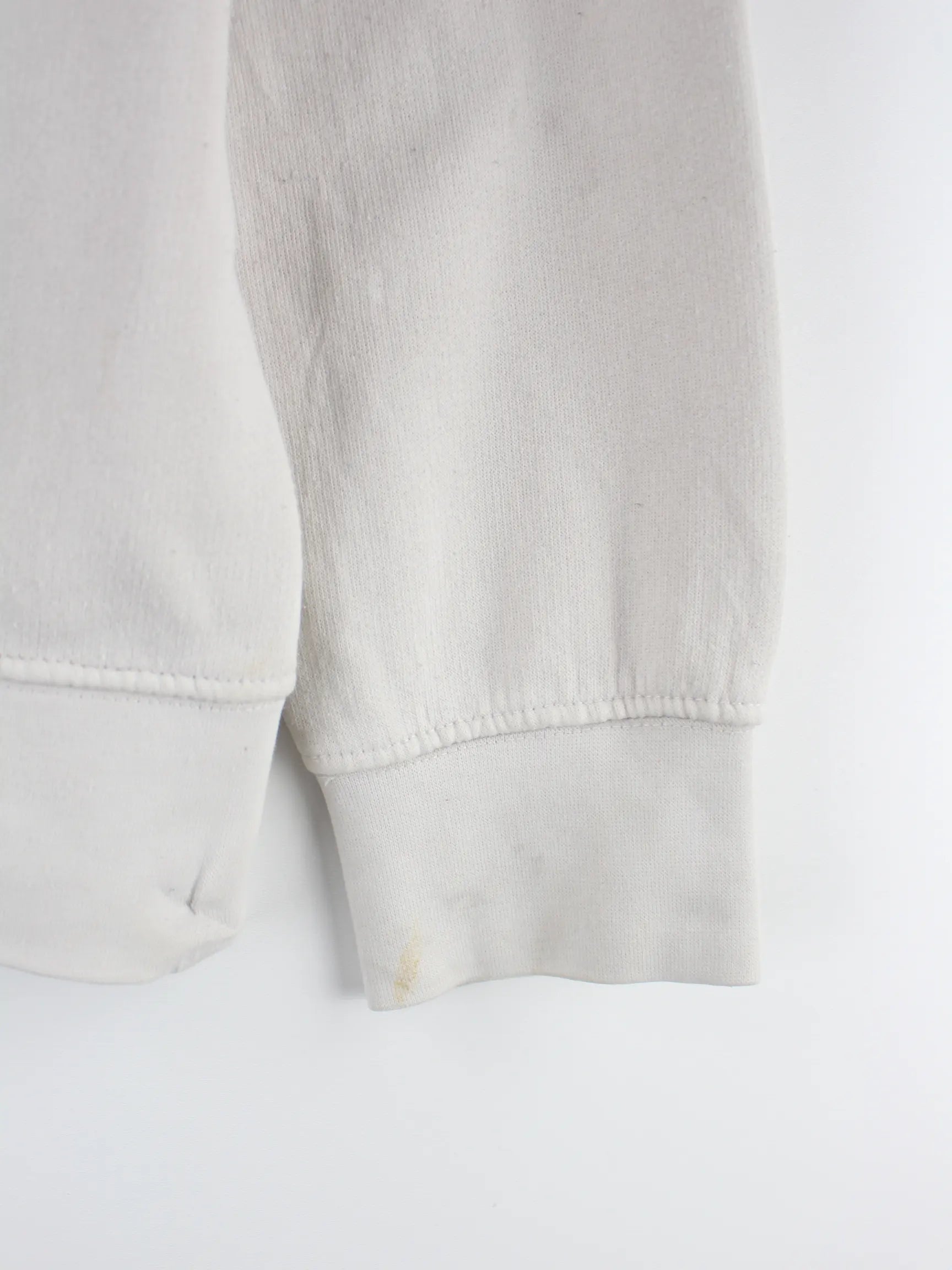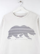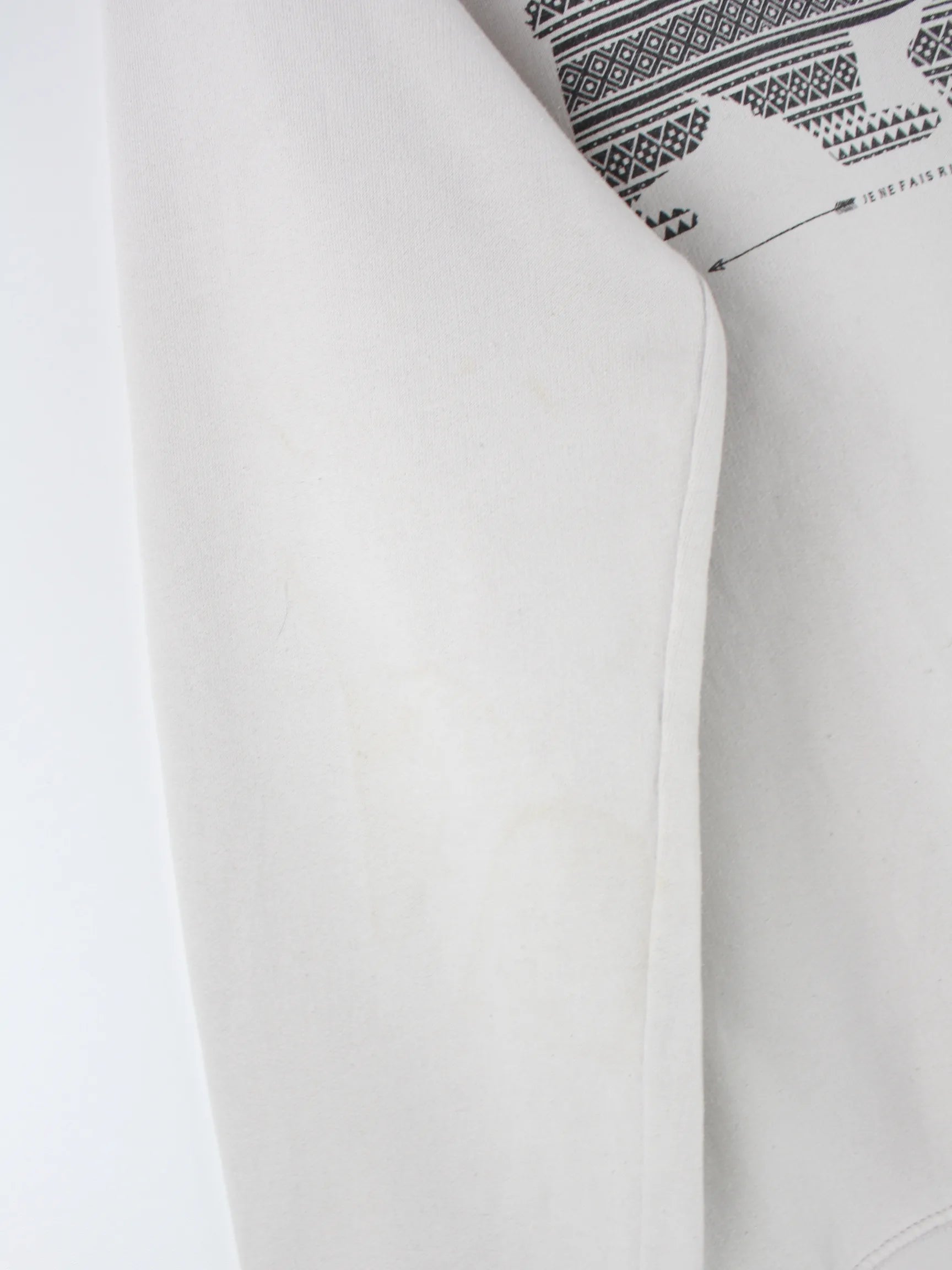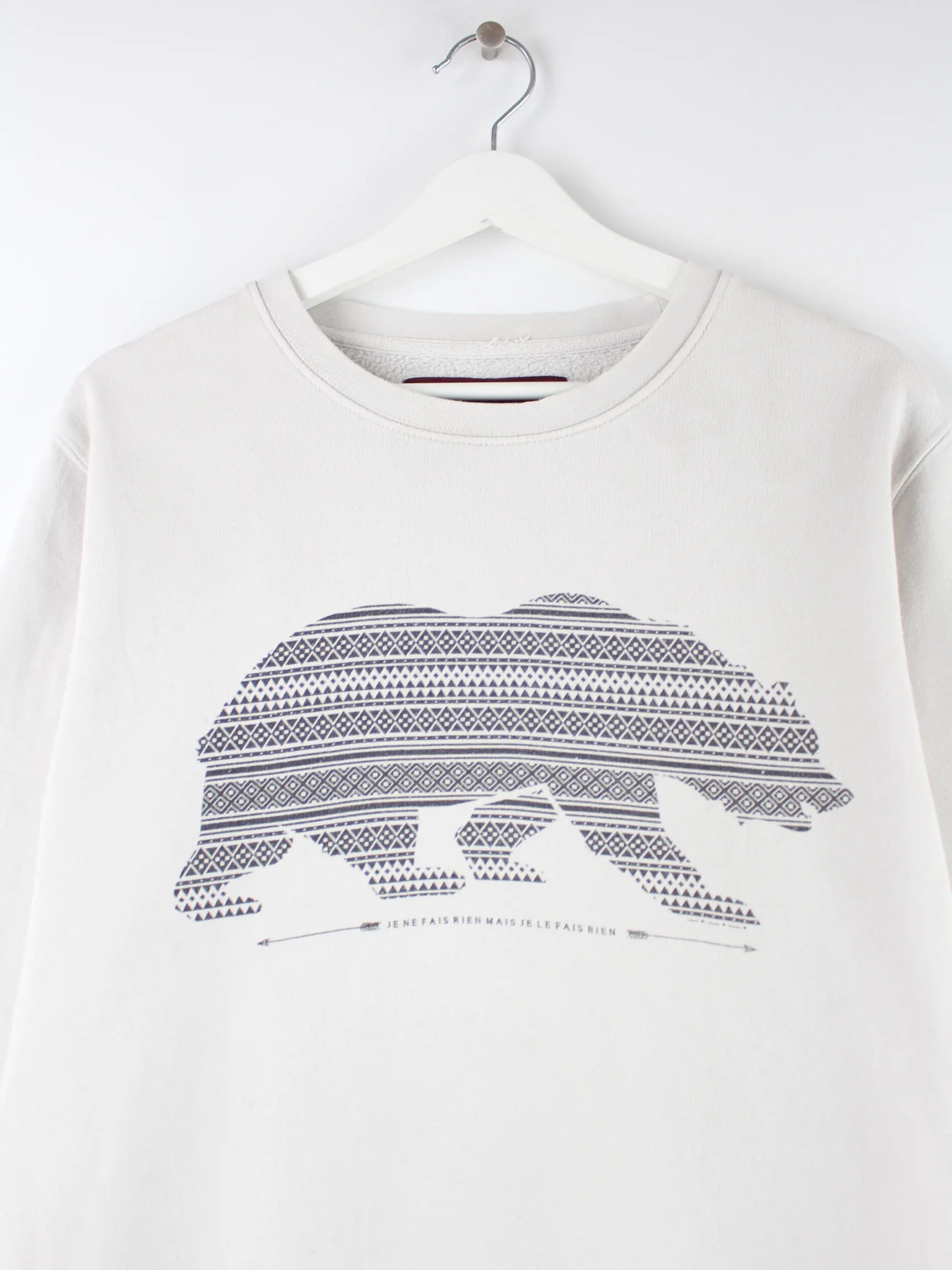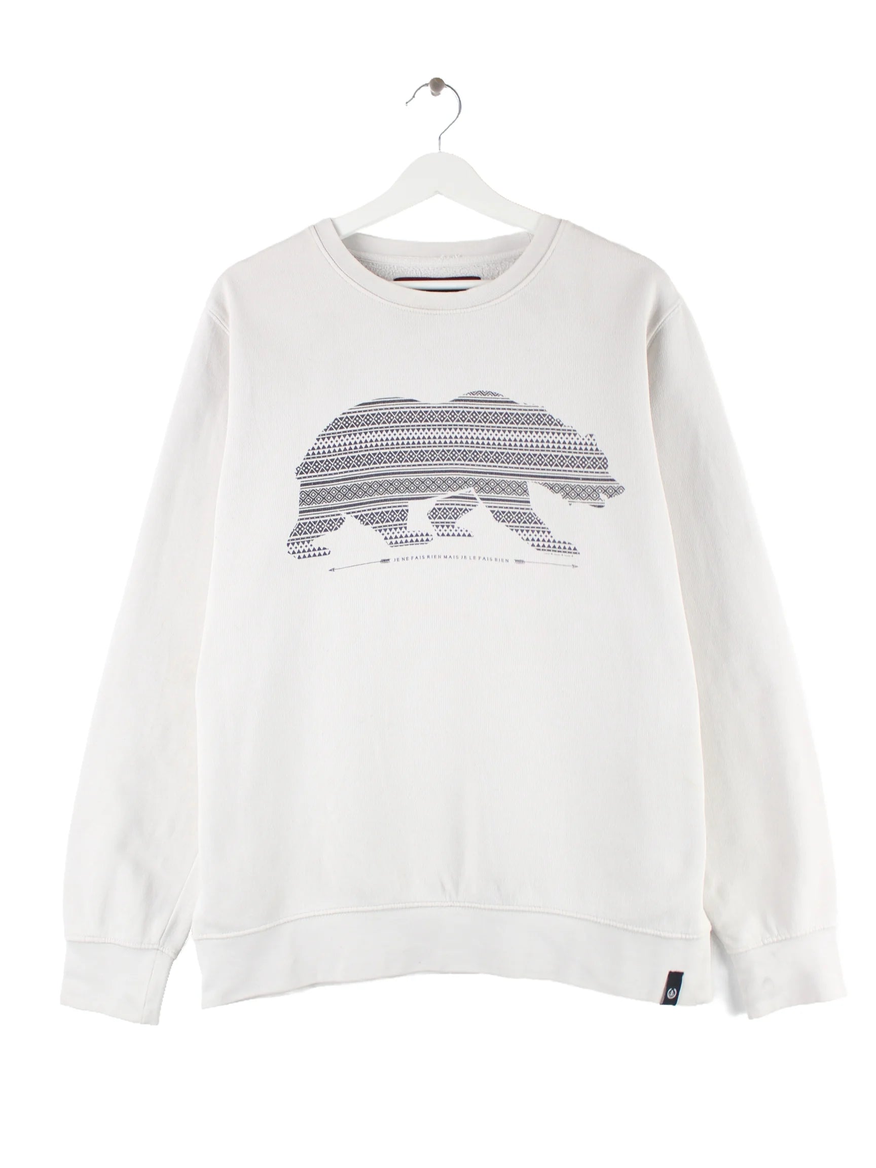 Weißer Vintage Sweater in Größe L. Er ist aus einer Baumwollmischung hergestellt. Den Zustand würden wir als 'In Ordnung' bezeichnen (vergl. Bilder).Mit tollem Bizzbee Print.