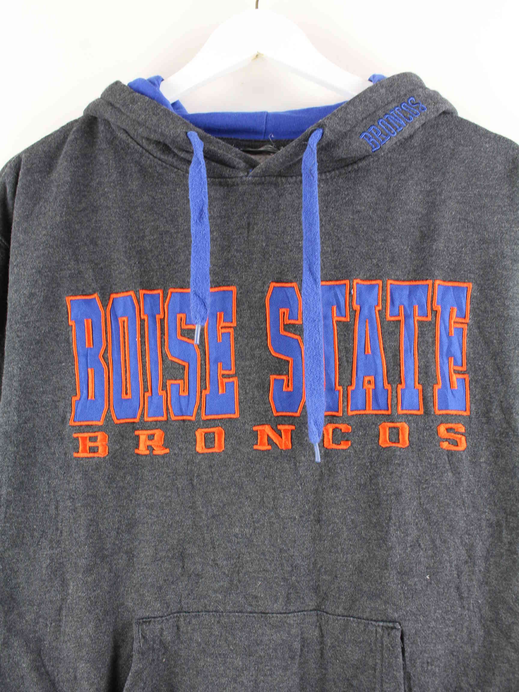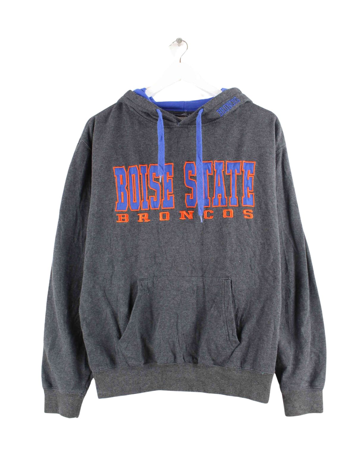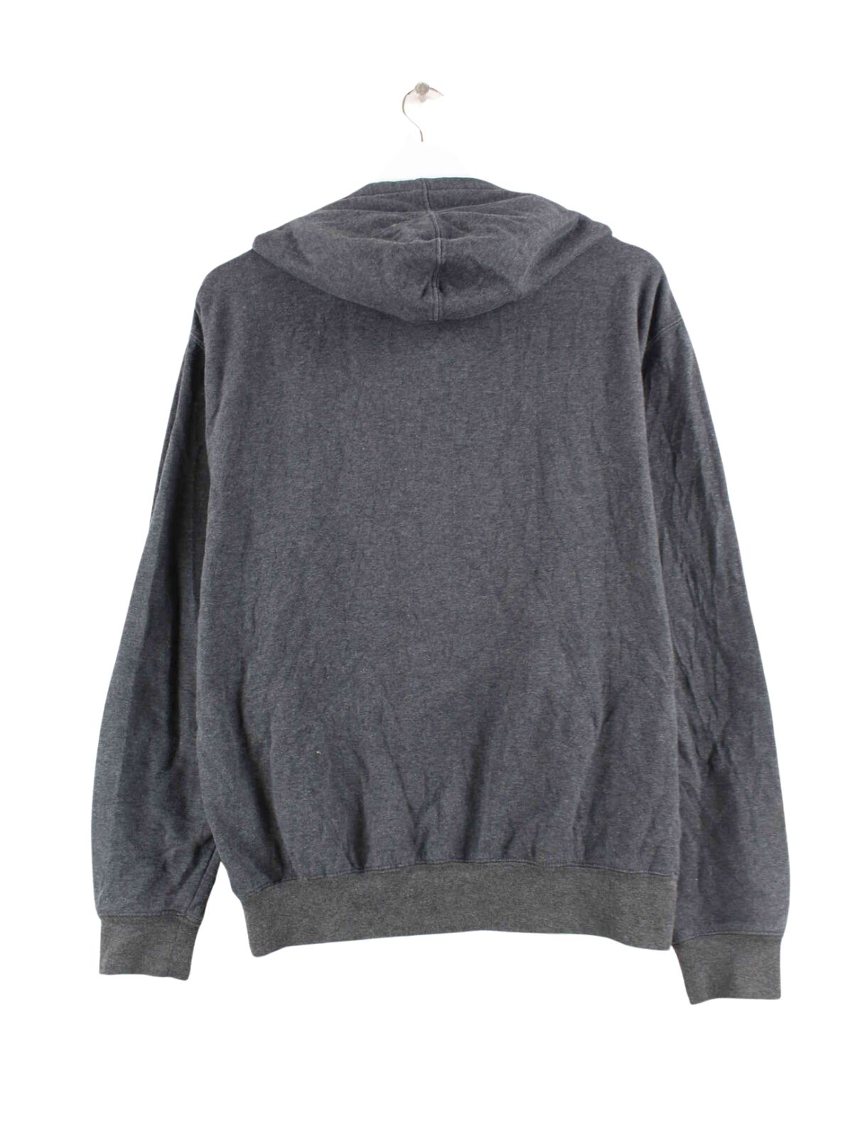 Grauer Vintage Hoodie mit gesticktem Logo in Größe M. Er ist aus einer Baumwollmischung gemacht und in sehr gutem Zustand bei uns vorrätig.
