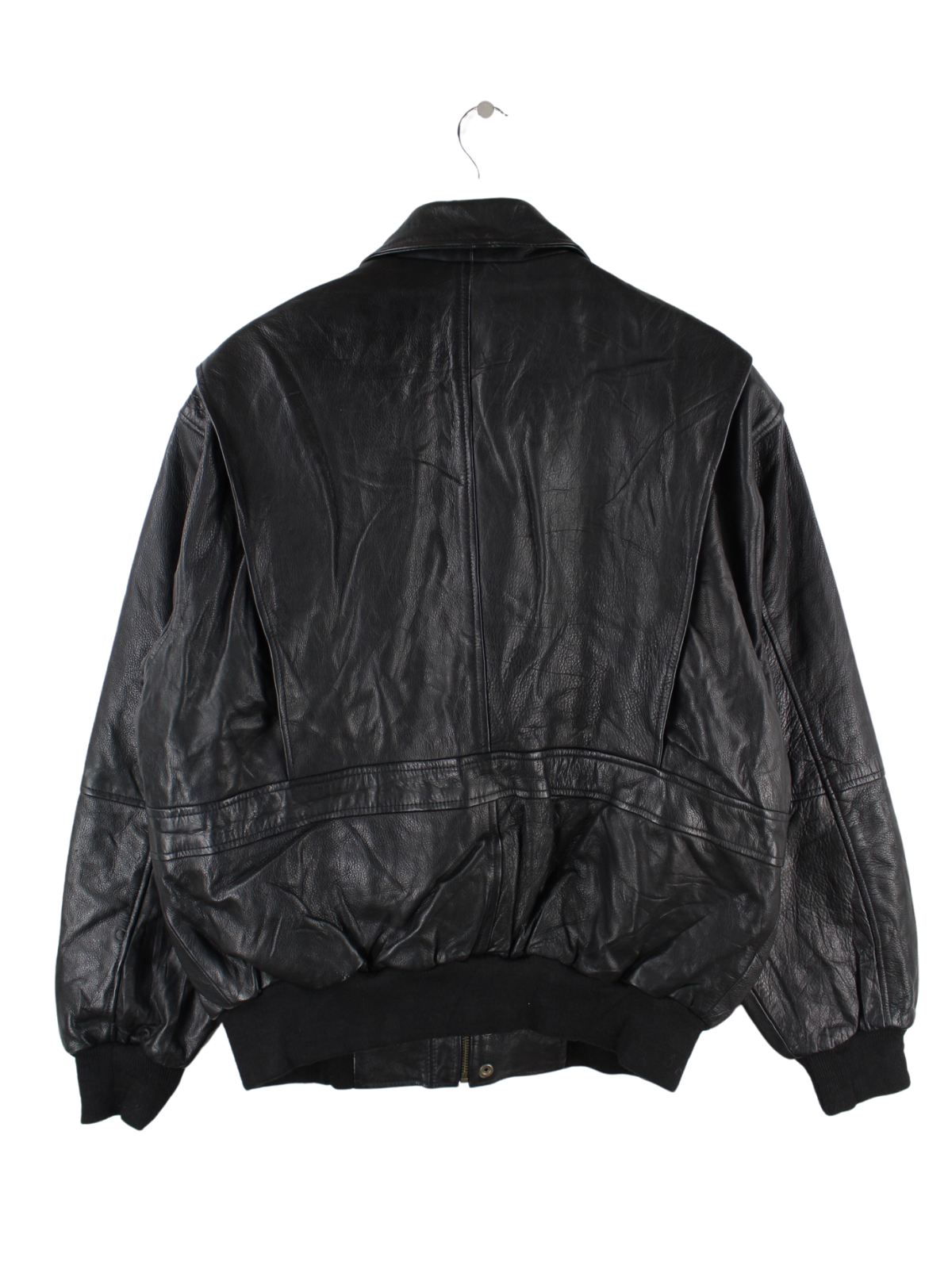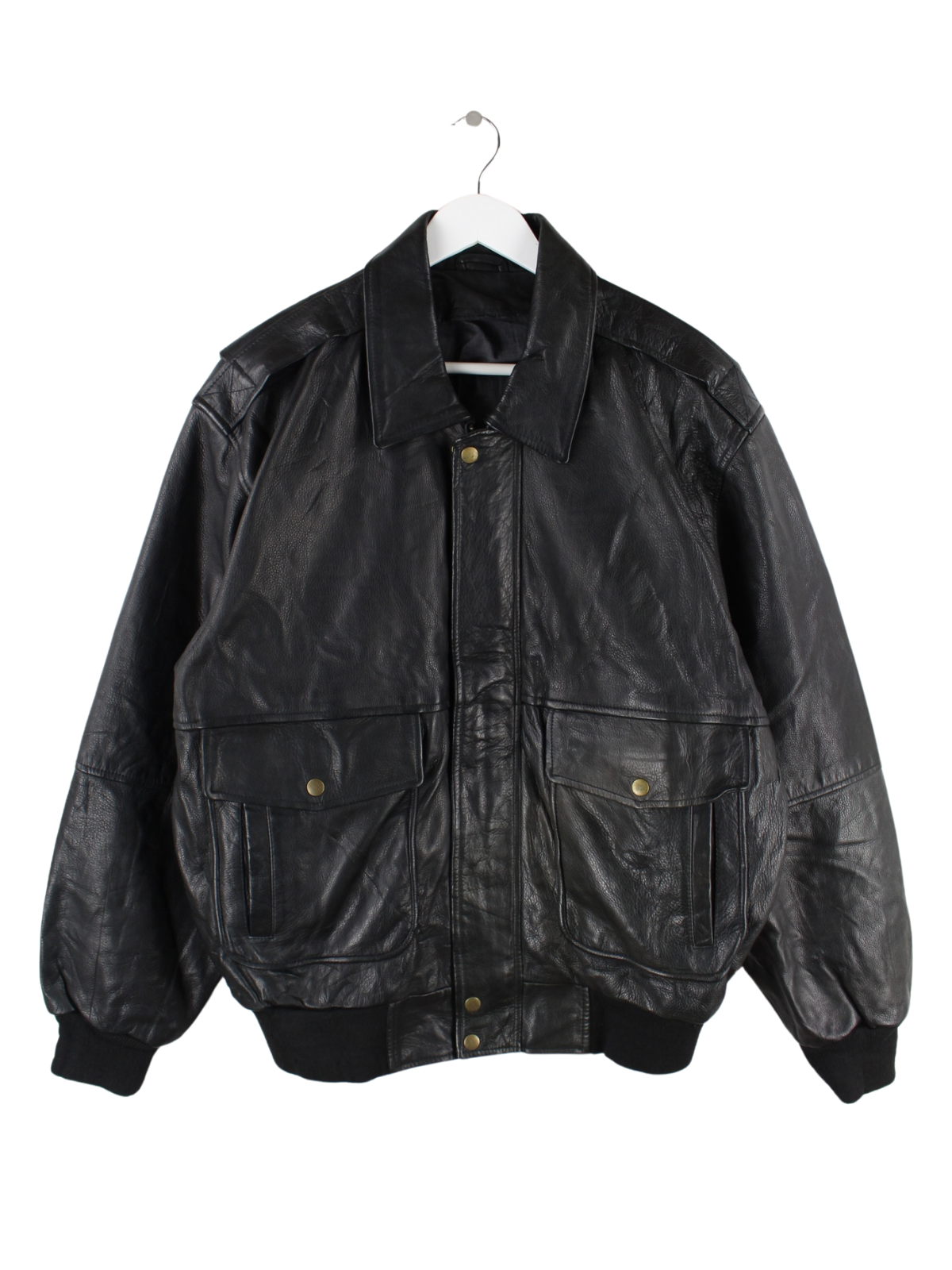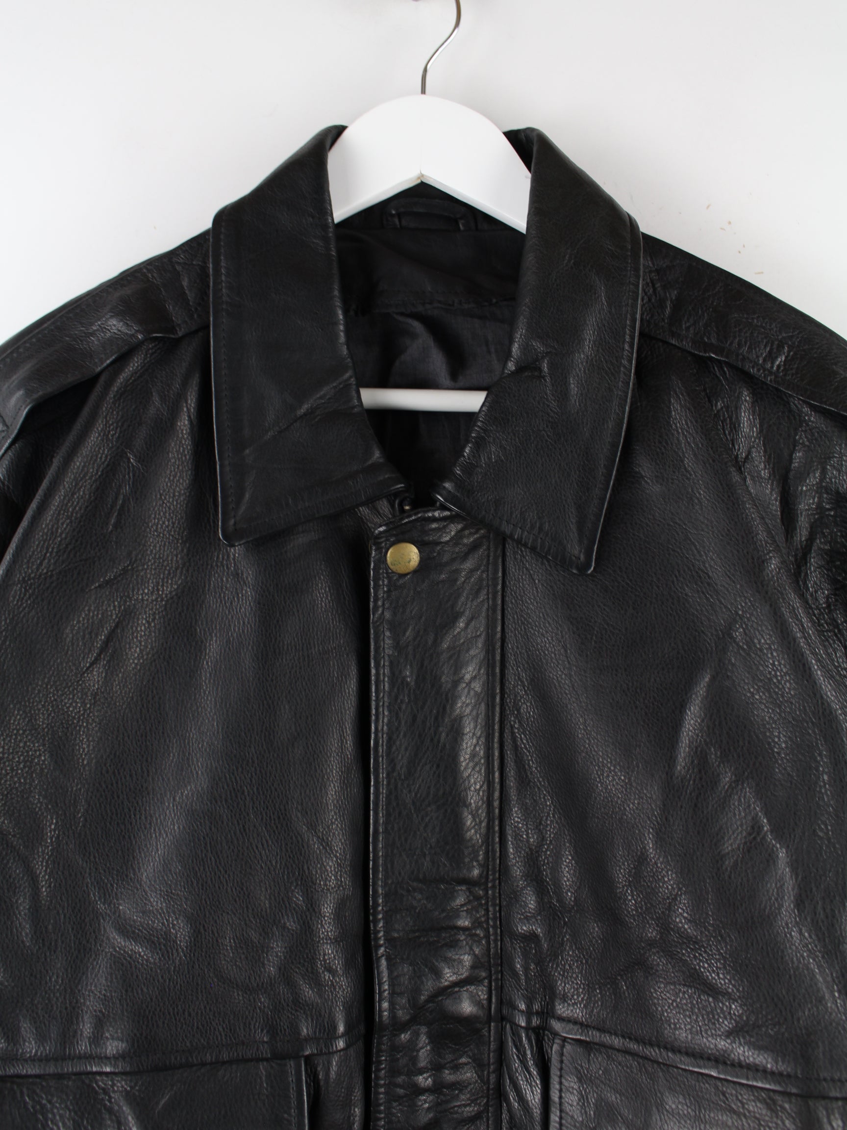 Vintage Jacke in Größe XL. Sie ist aus Leder gefertigt und in Schwarz im Bestand.