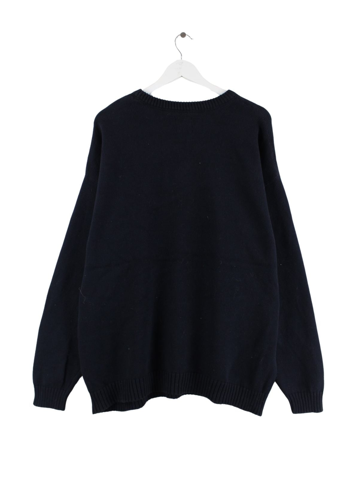 Vintage Pullover mit gesticktem Logo in Größe XXL. Er ist aus Baumwolle hergestellt und in Blau vorrätig.