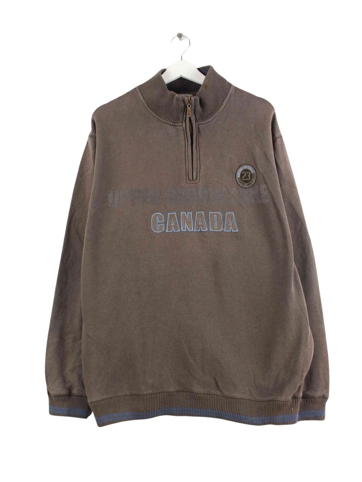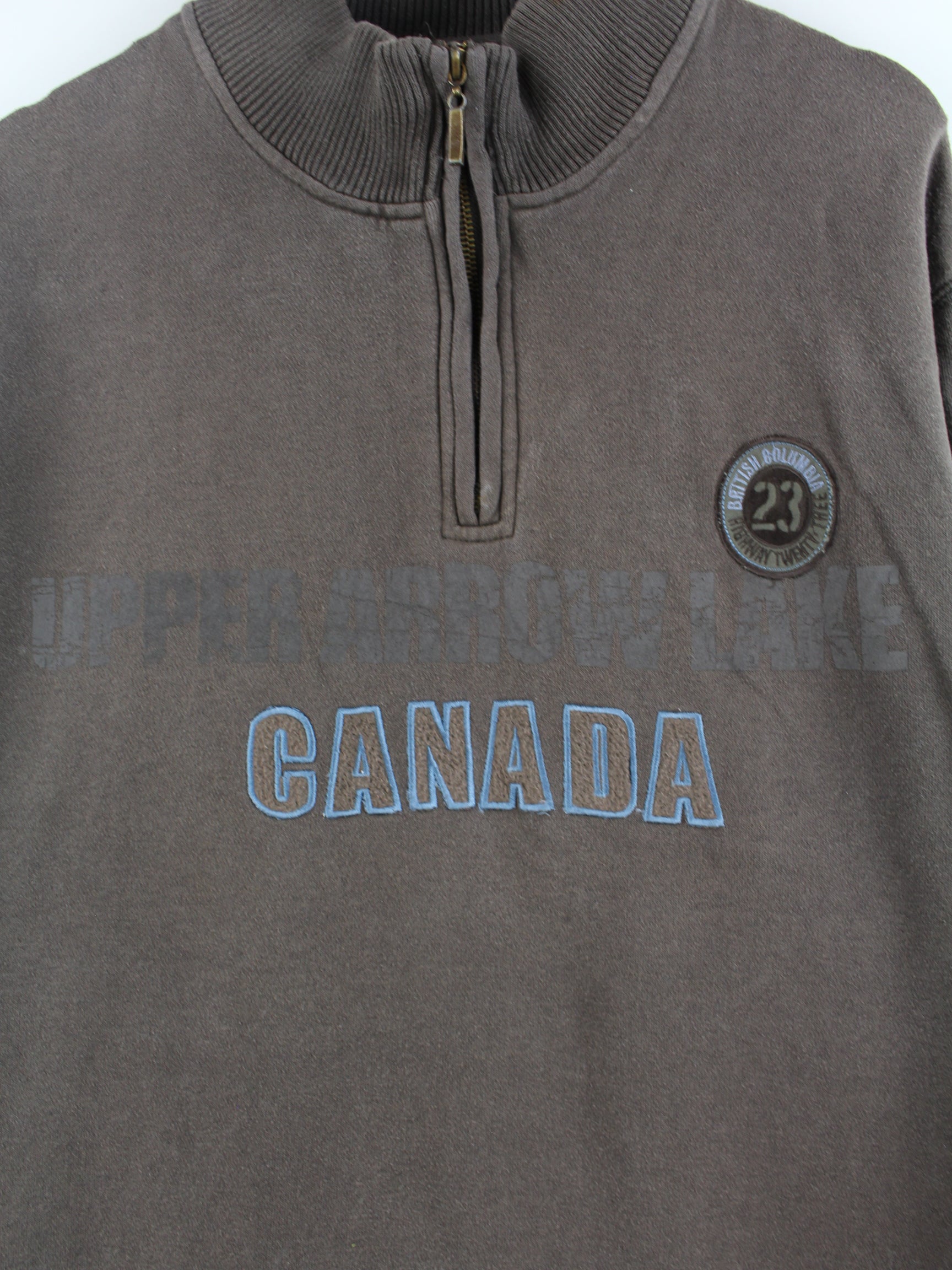 Vintage Canada Embroidery Half Zip Sweater Braun XL