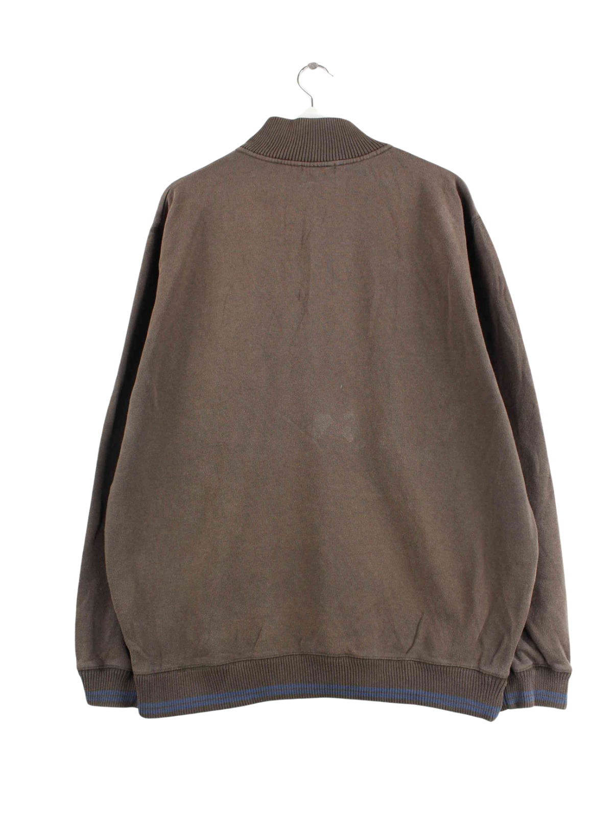 Brauner Vintage Sweater mit kurzem Reißverschluß in Größe XL. Er ist aus einer Baumwollmischung gemacht und in gutem Zustand vorrätig.