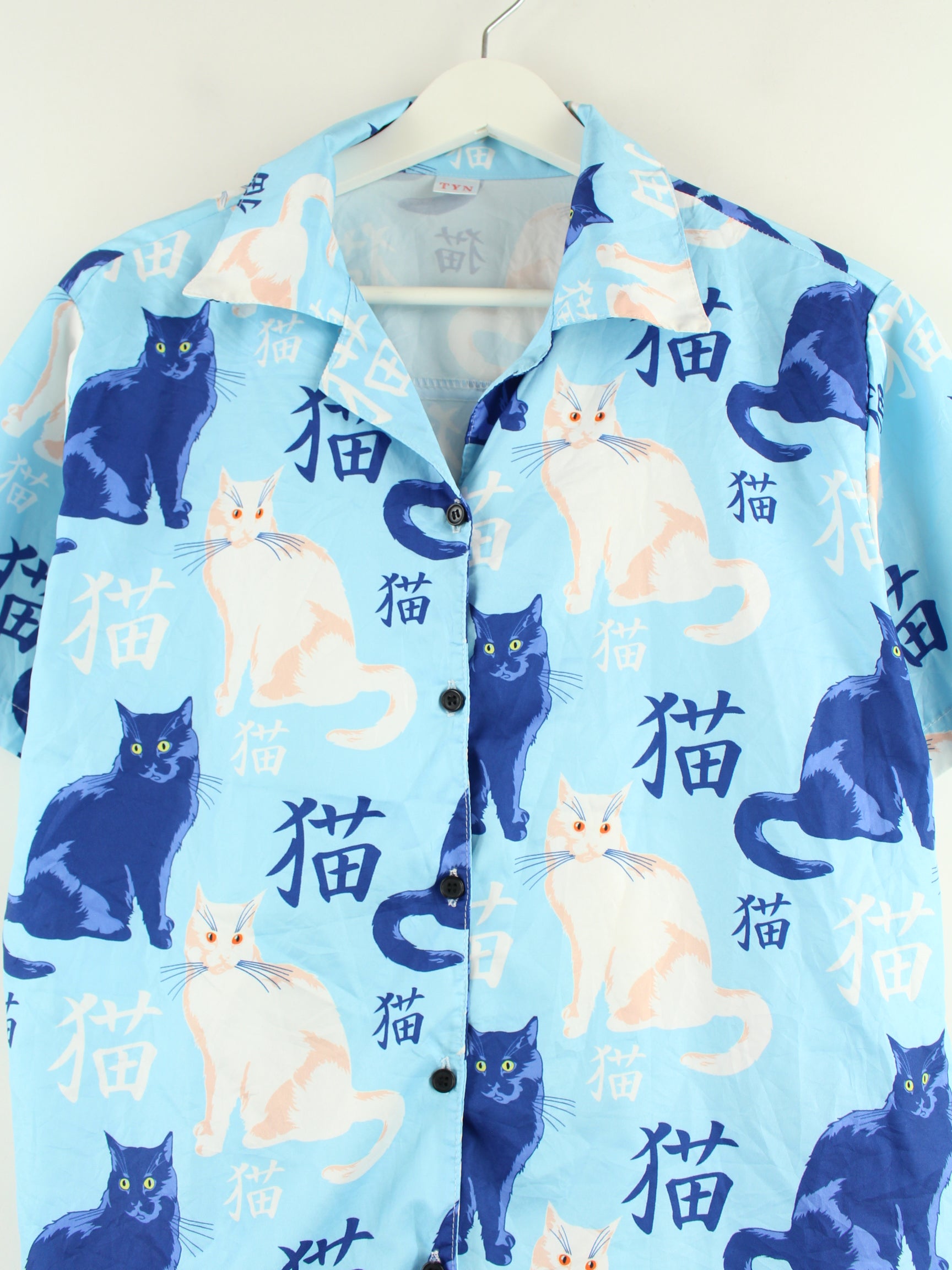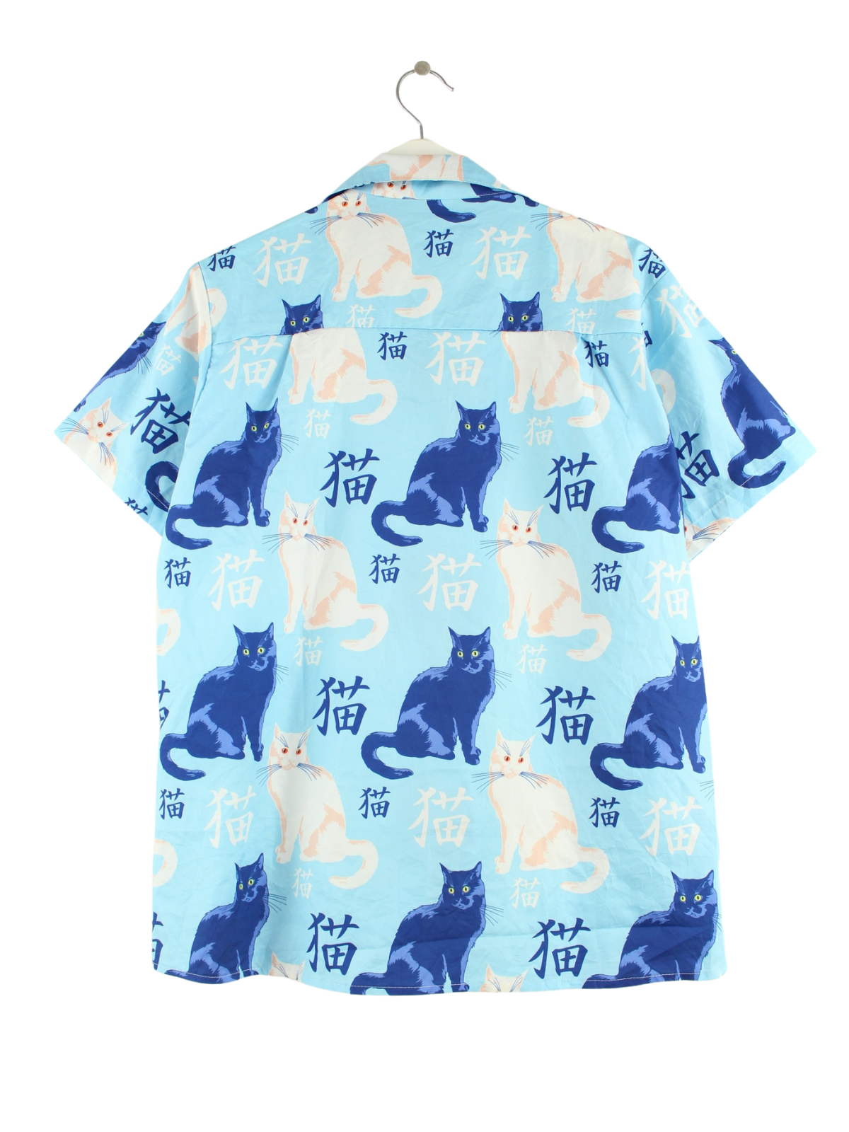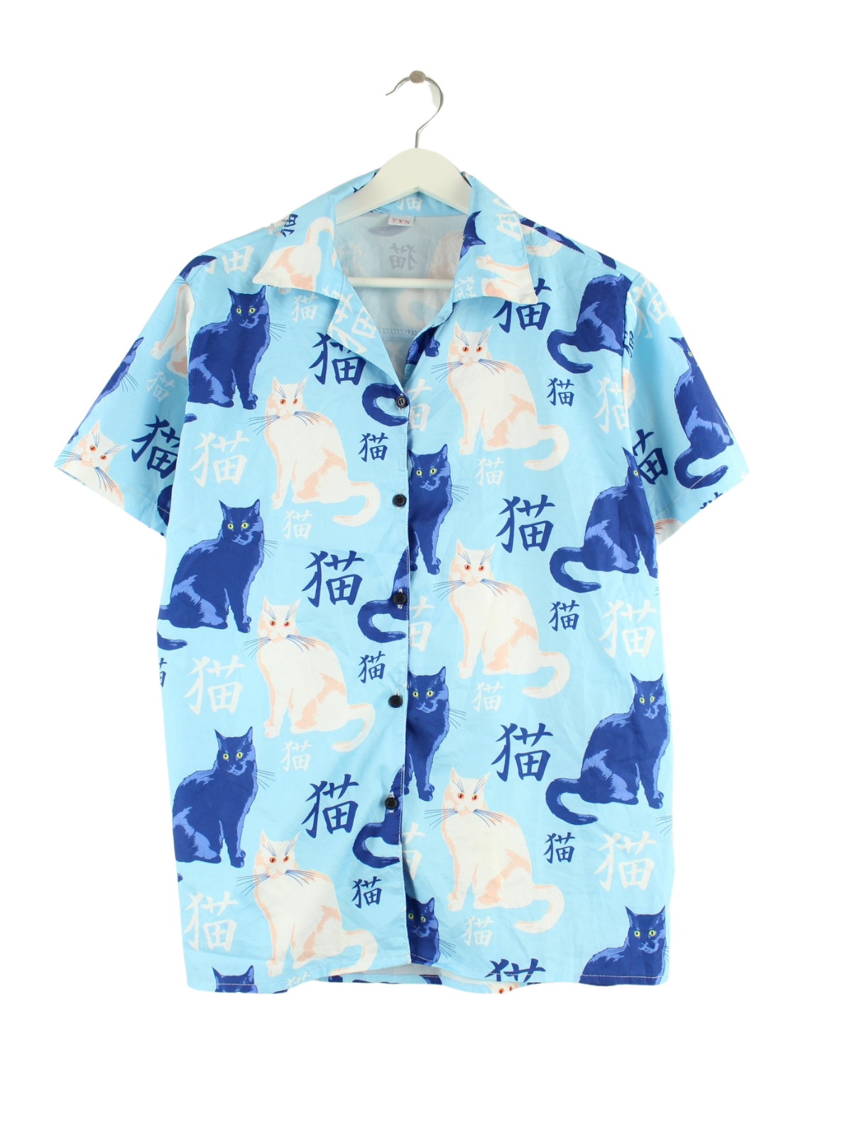 Vintage Cat Pattern Hawaii Hemd Blau M
