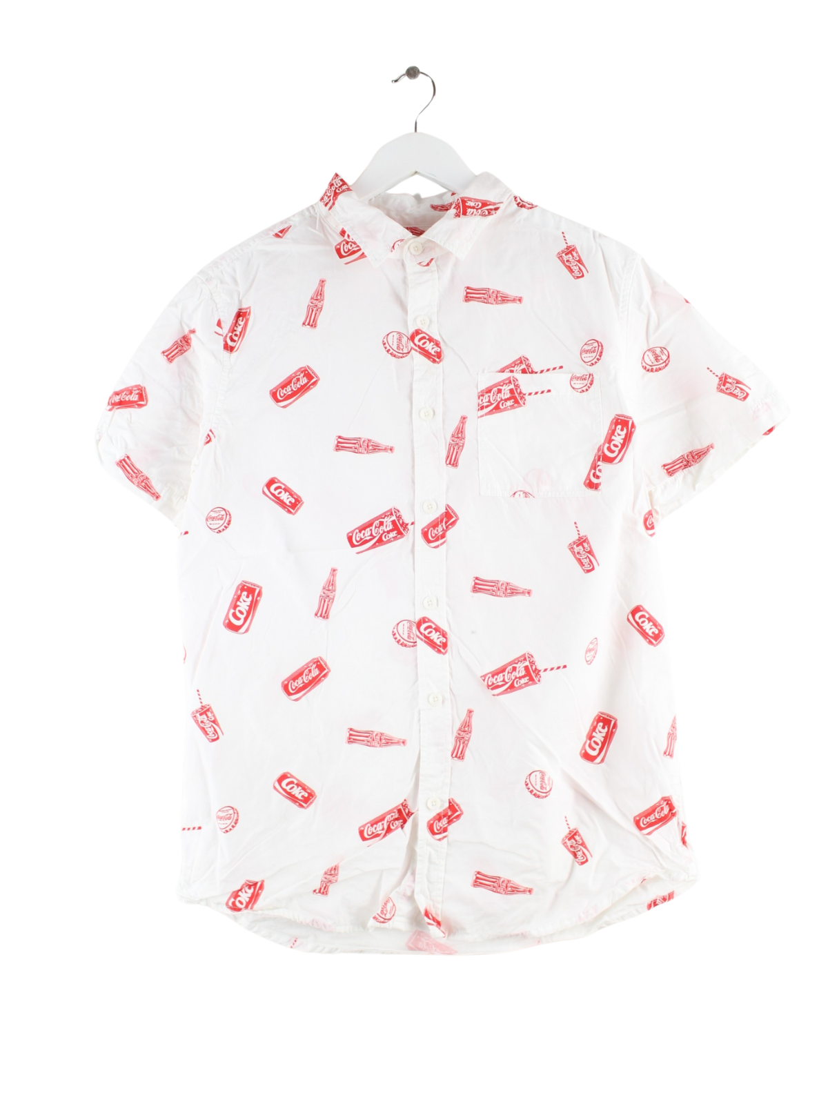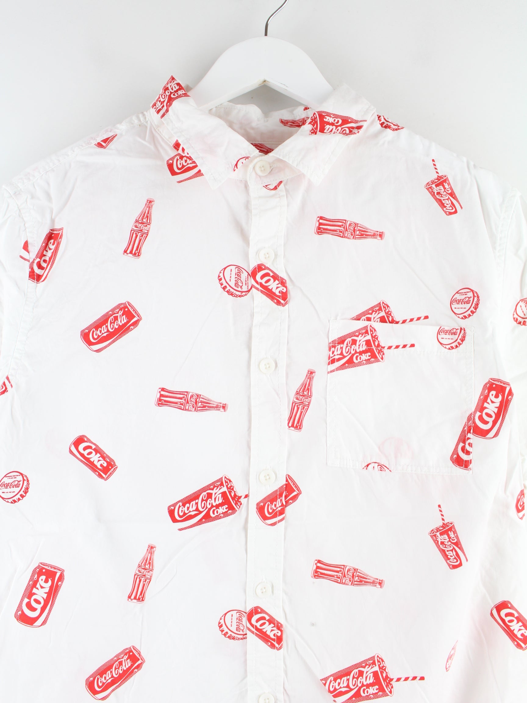 Vintage Coca Cola Pattern Kurzarm Hemd Weiß M