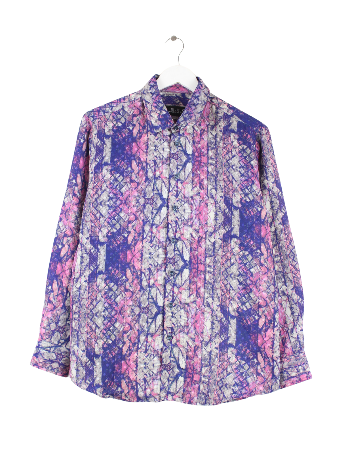 Lilafarbenes Vintage Freizeit Hemd in Größe XL. Es ist aus Synthetik gefertigt und in sehr gutem Zustand vorrätig.