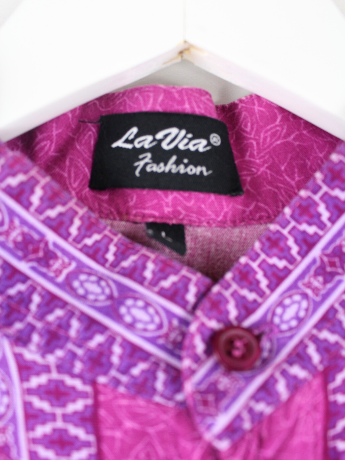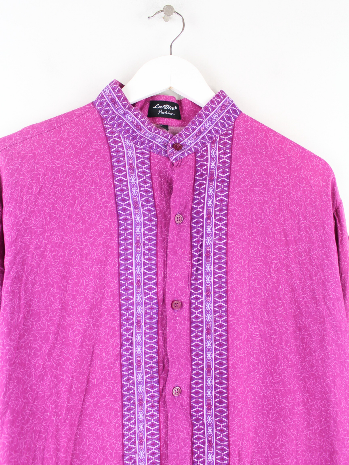 Vintage Crazy Pattern Round Neck Hemd Lila L