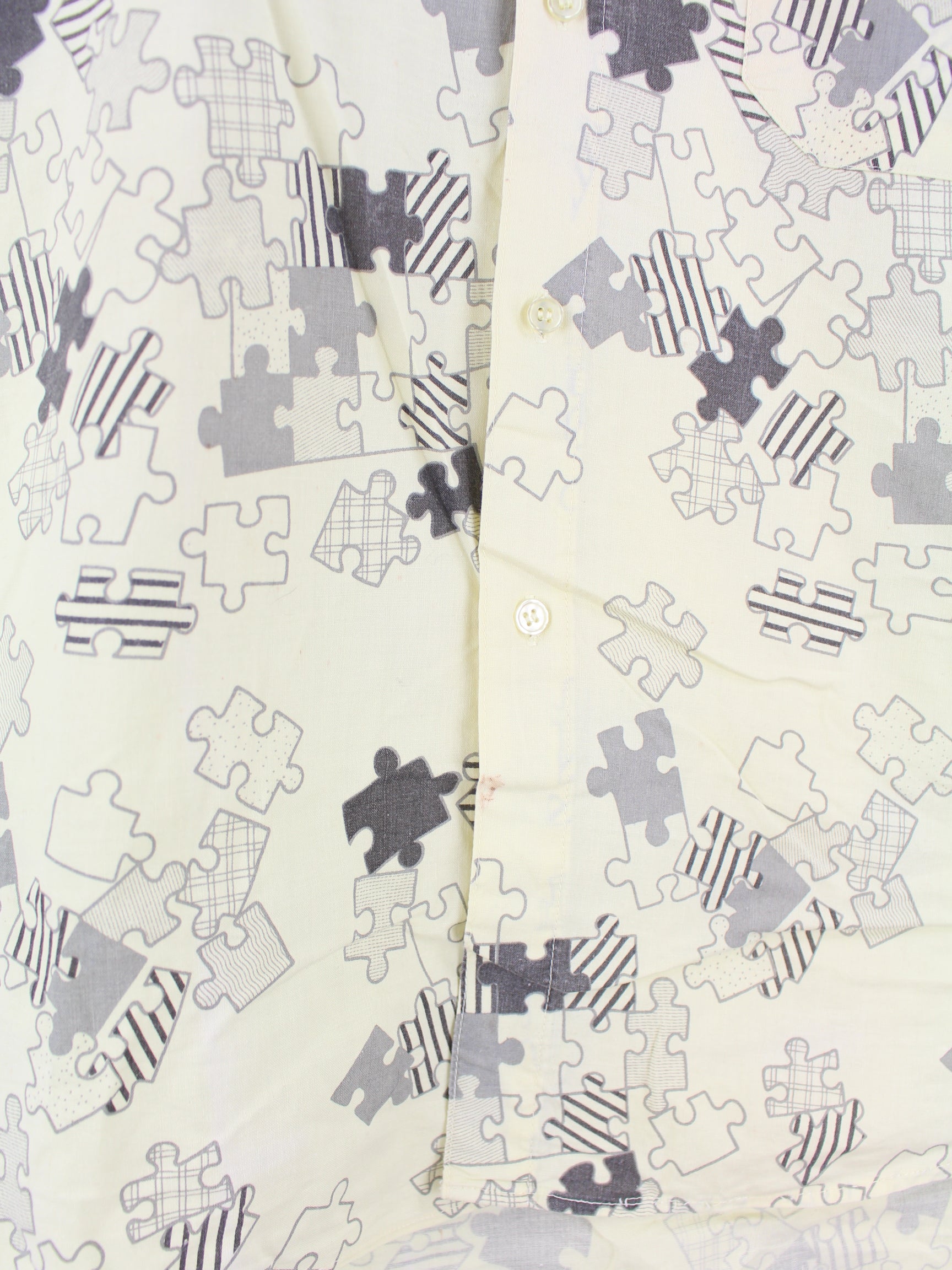 Vintage Crazy Puzzle Pattern Hemd Gelb XXL