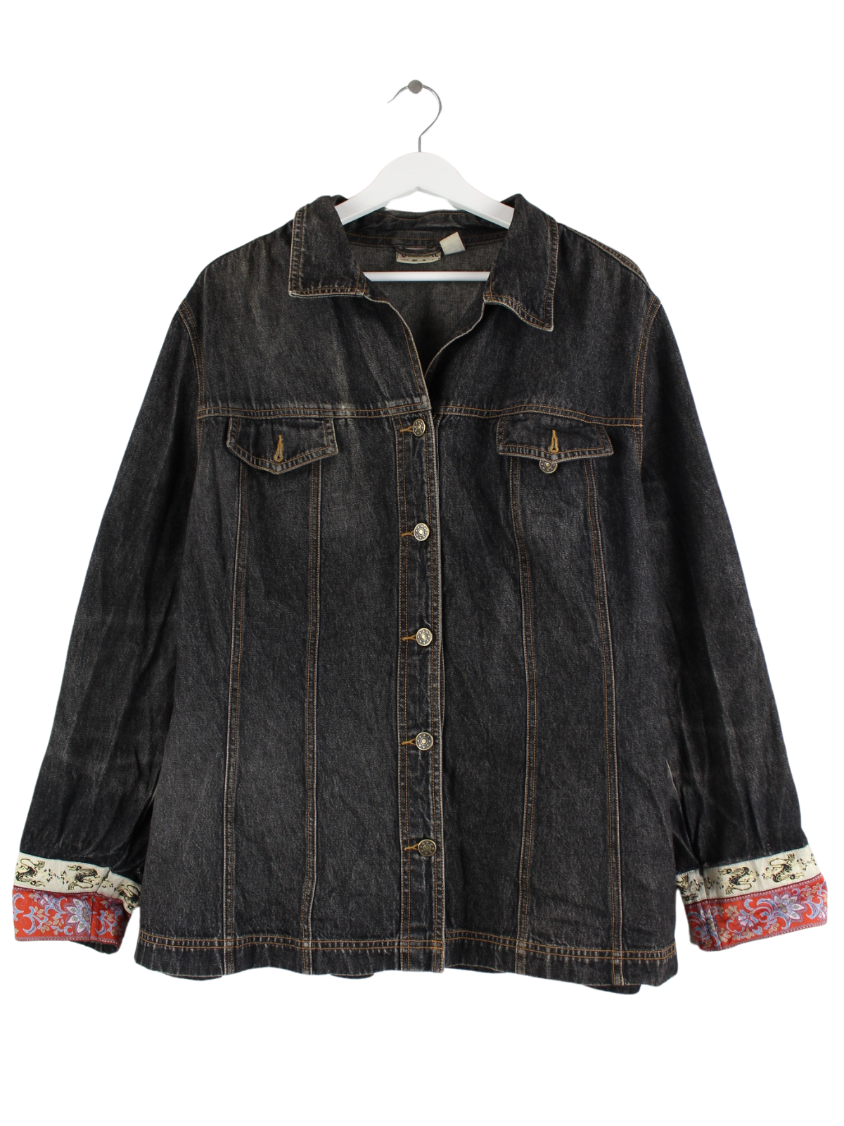 Vintage Damen 80s Jeans Jacke Schwarz XL