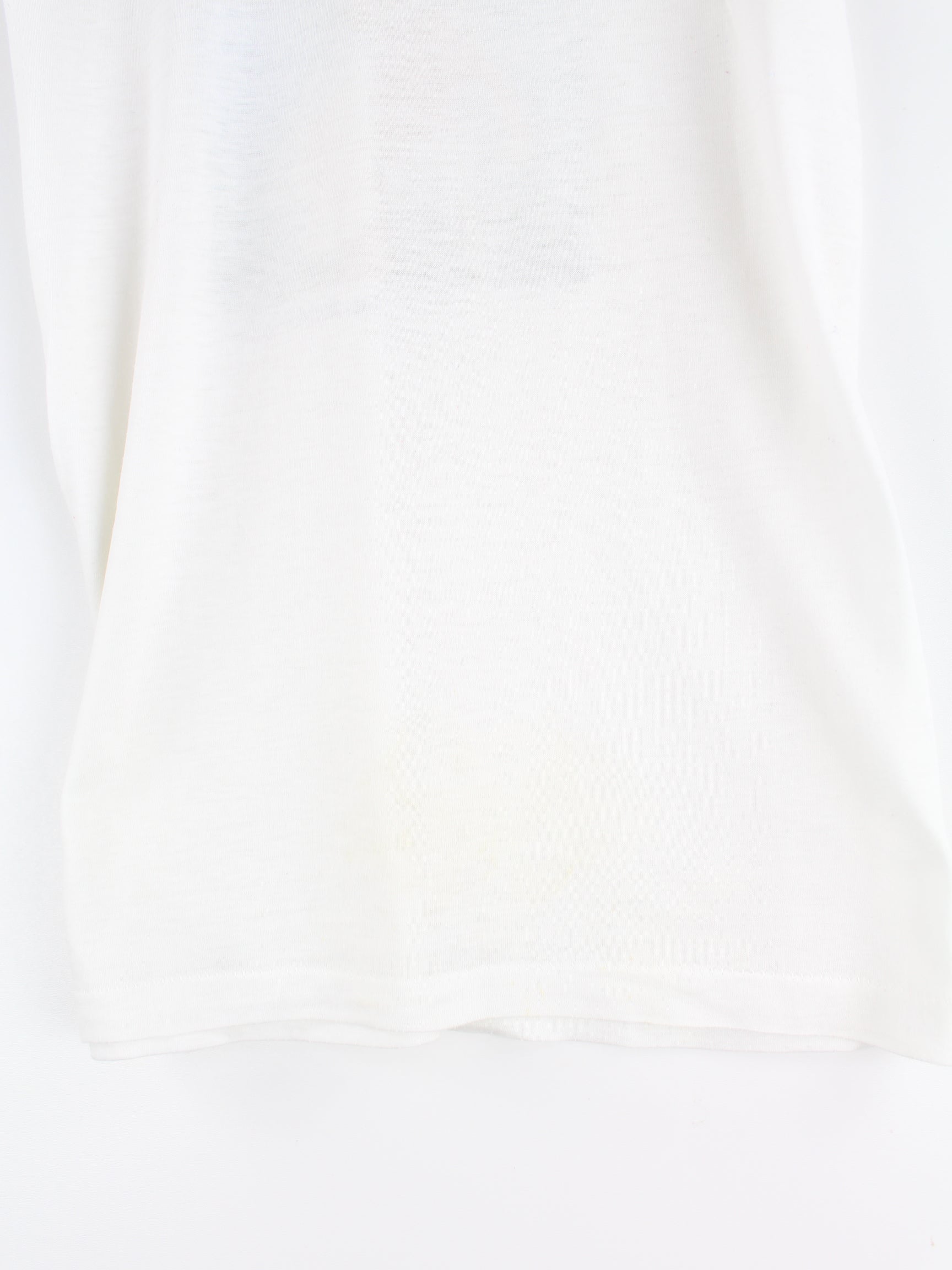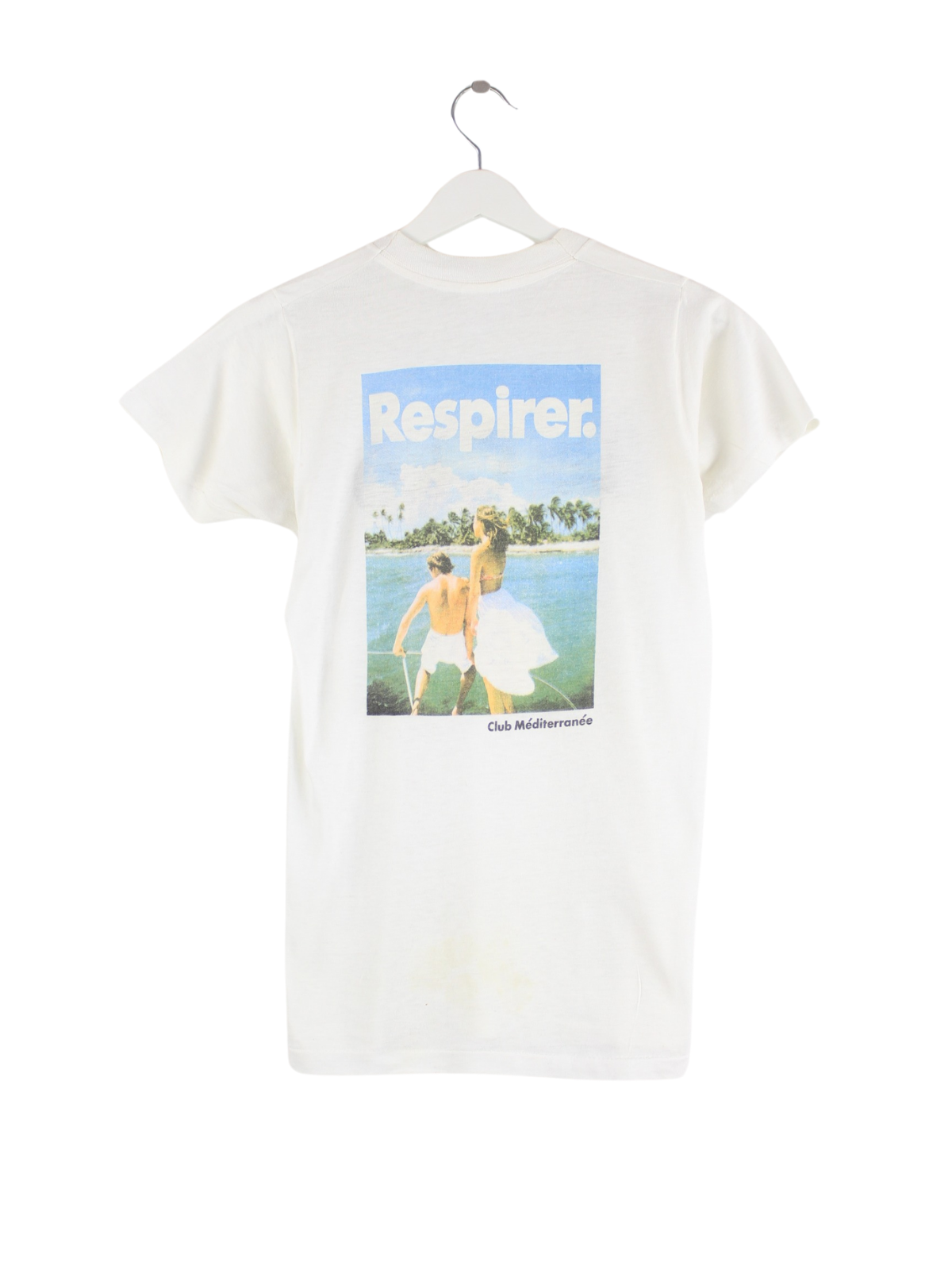 Vintage Damen 90s Club Mediteranne Print Single Stitch T-Shirt Weiß S