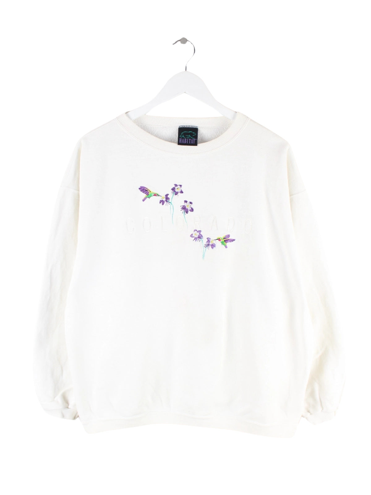 Vintage Damen 90s Colorado Embroidered Sweater Weiß L