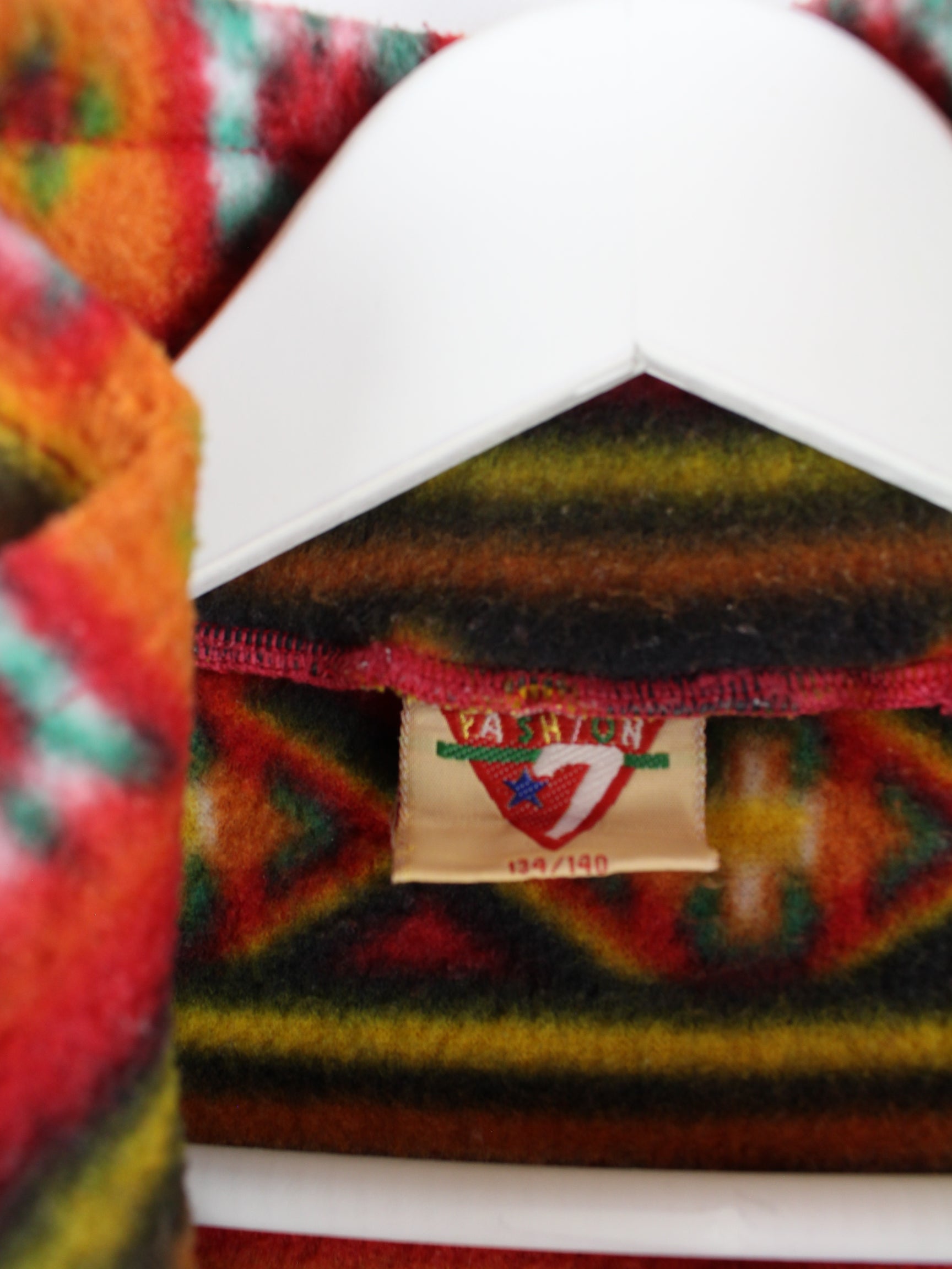 Mehrfarbiger Vintage Sweater mit half Zip aus den 90'ern in Größe XXS. Er ist aus Synthetik und in gutem Zustand bei uns zu bekommen.