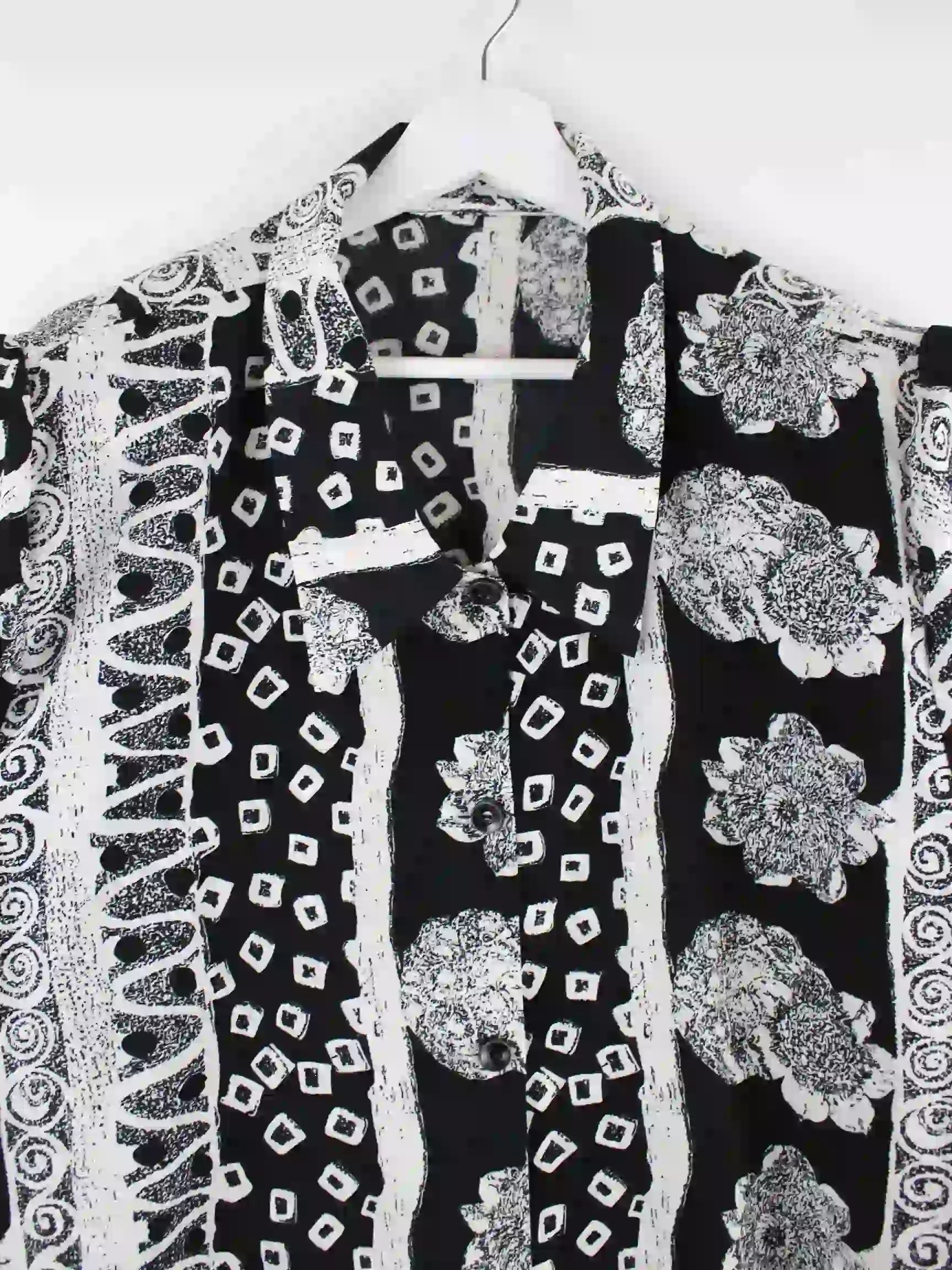 Vintage Damen 90s Crazy Pattern Hemd Schwarz XL