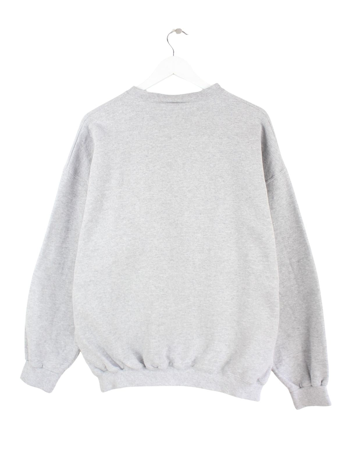 Vintage Sweater in Größe XL aus den 90'ern. Er ist aus einer Baumwollmischung und in Grau lieferbar.