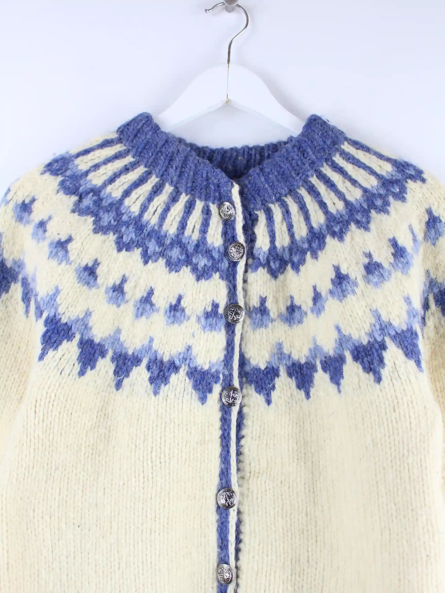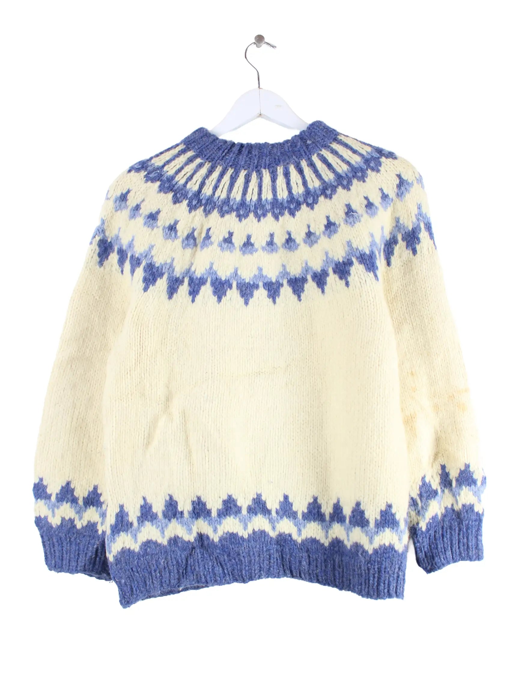 Beigefarbene Vintage Strickjacke aus den 90'ern in Größe M. Sie ist aus Wolle angefertigt. Den Zustand würden wir als 'In Ordnung' bezeichnen (vergl. Bilder).