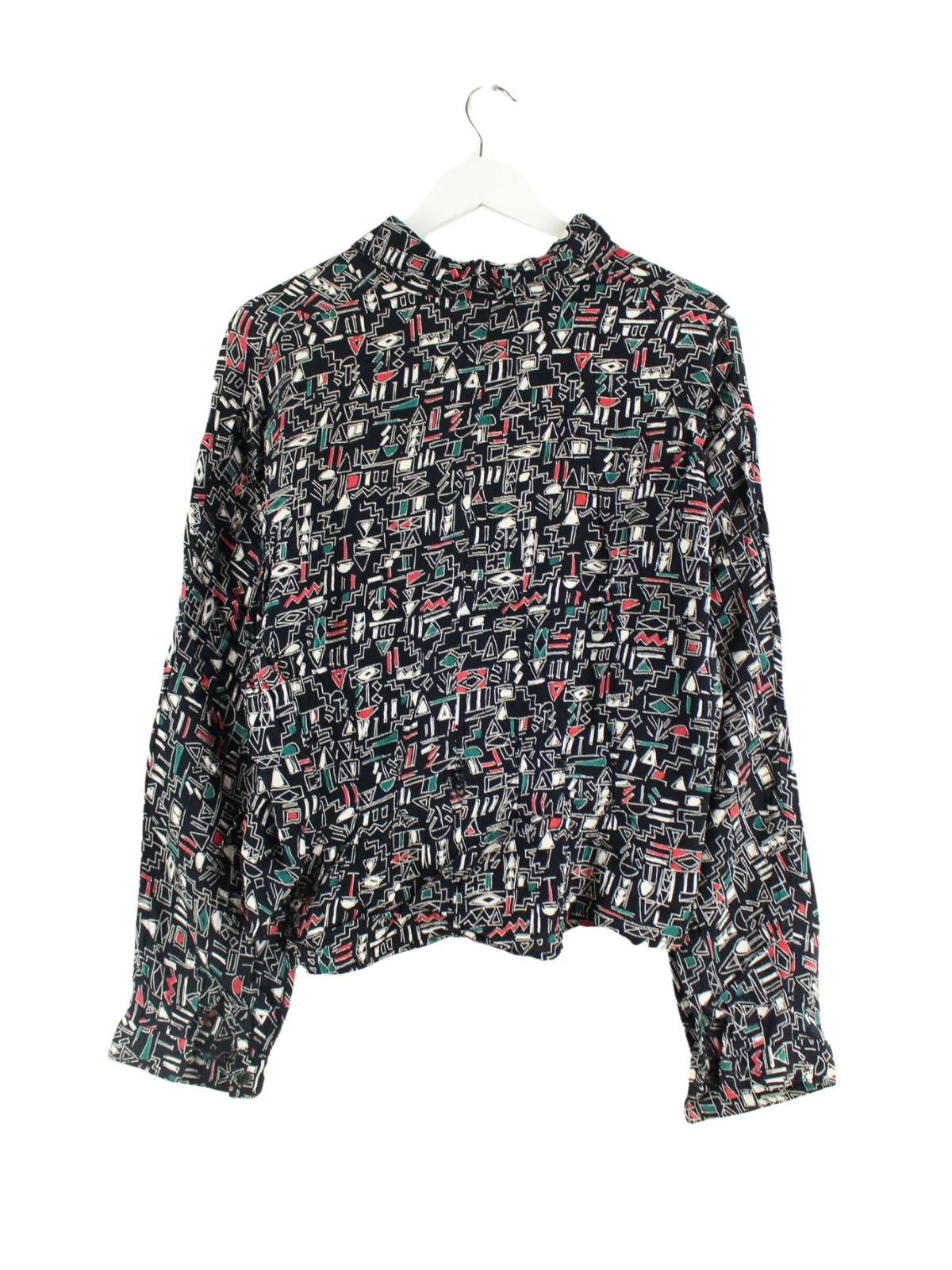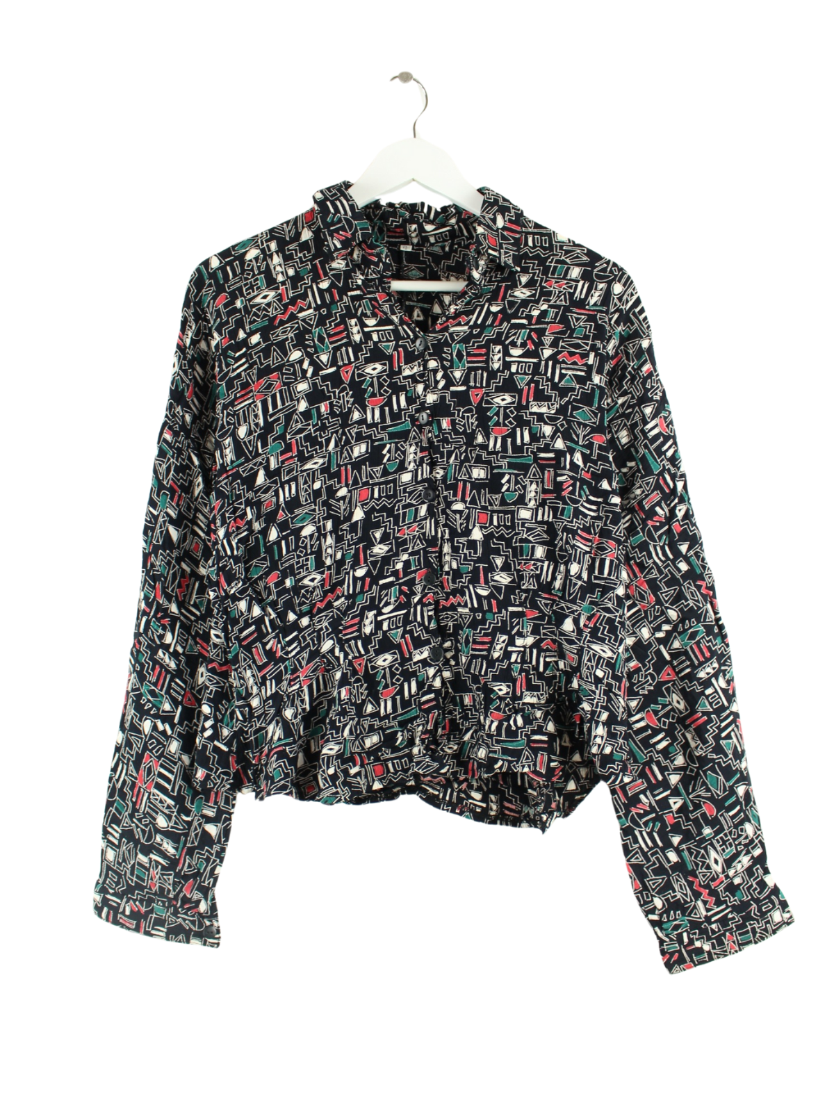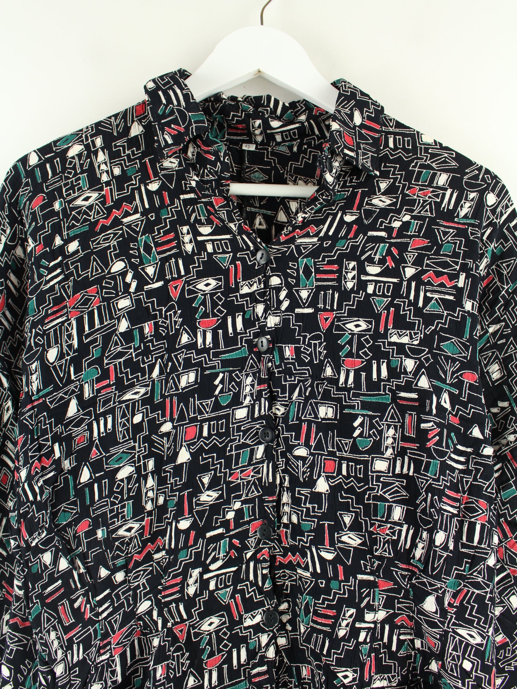 Vintage Damen Crazy Pattern Hemd Schwarz M