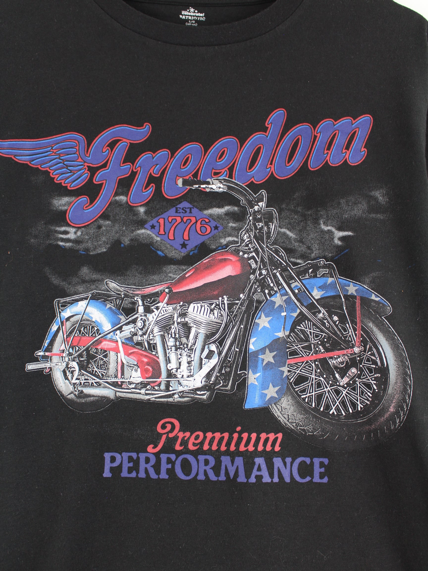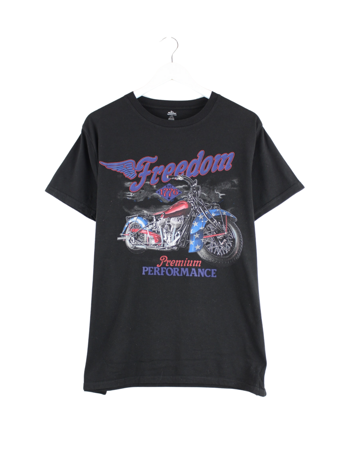 Vintage Damen USA Biker Print T-Shirt Schwarz L