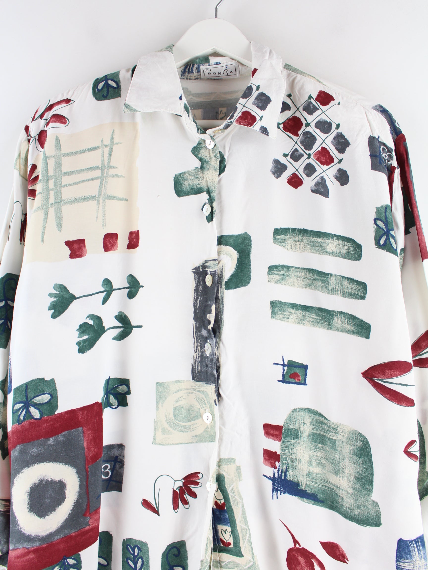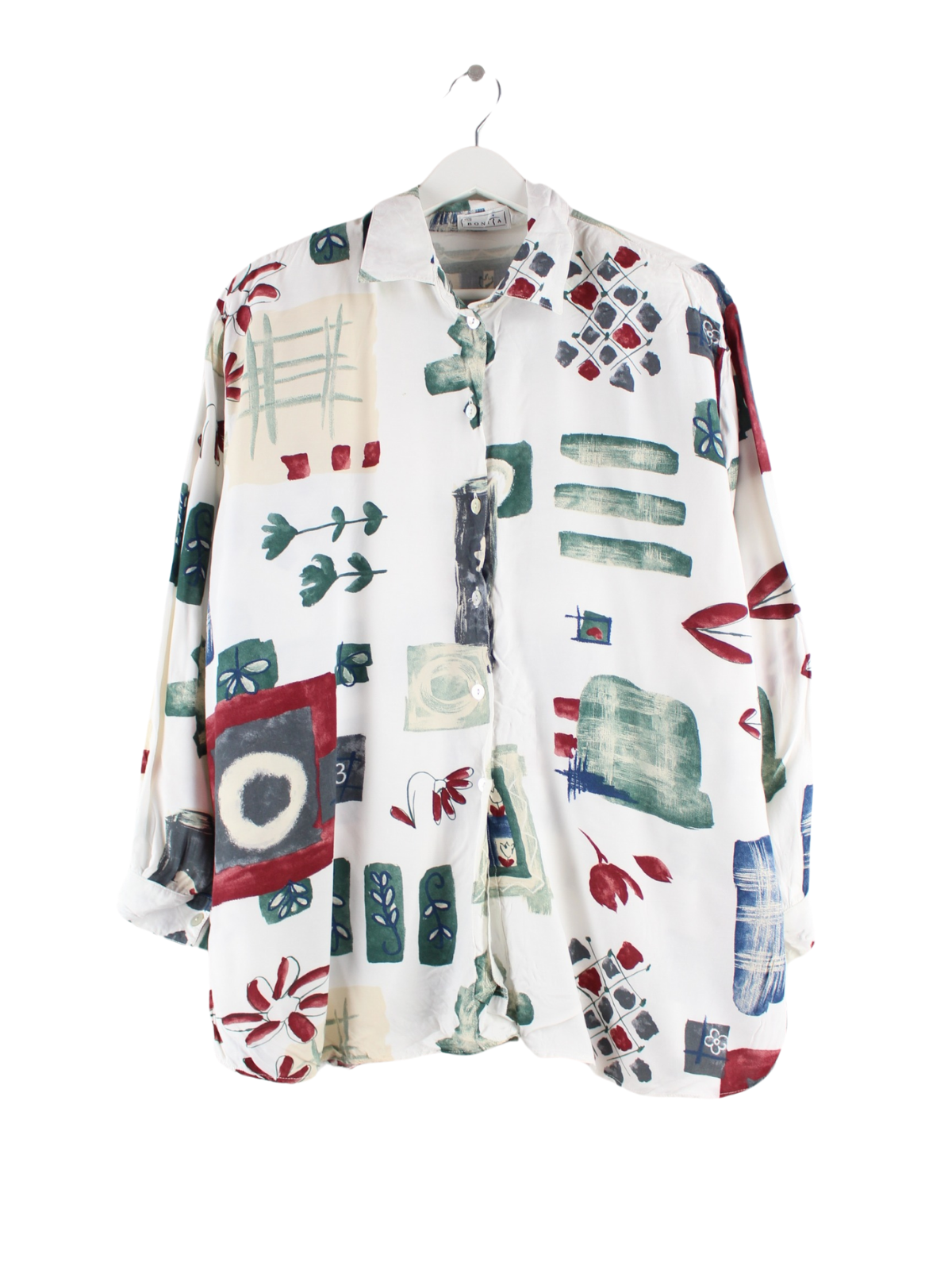 Weißes Vintage Freizeit Hemd aus Anfang der 2000'er in Größe M. Es ist aus einer Baumwollmischung gefertigt und in gutem Zustand vorrätig.