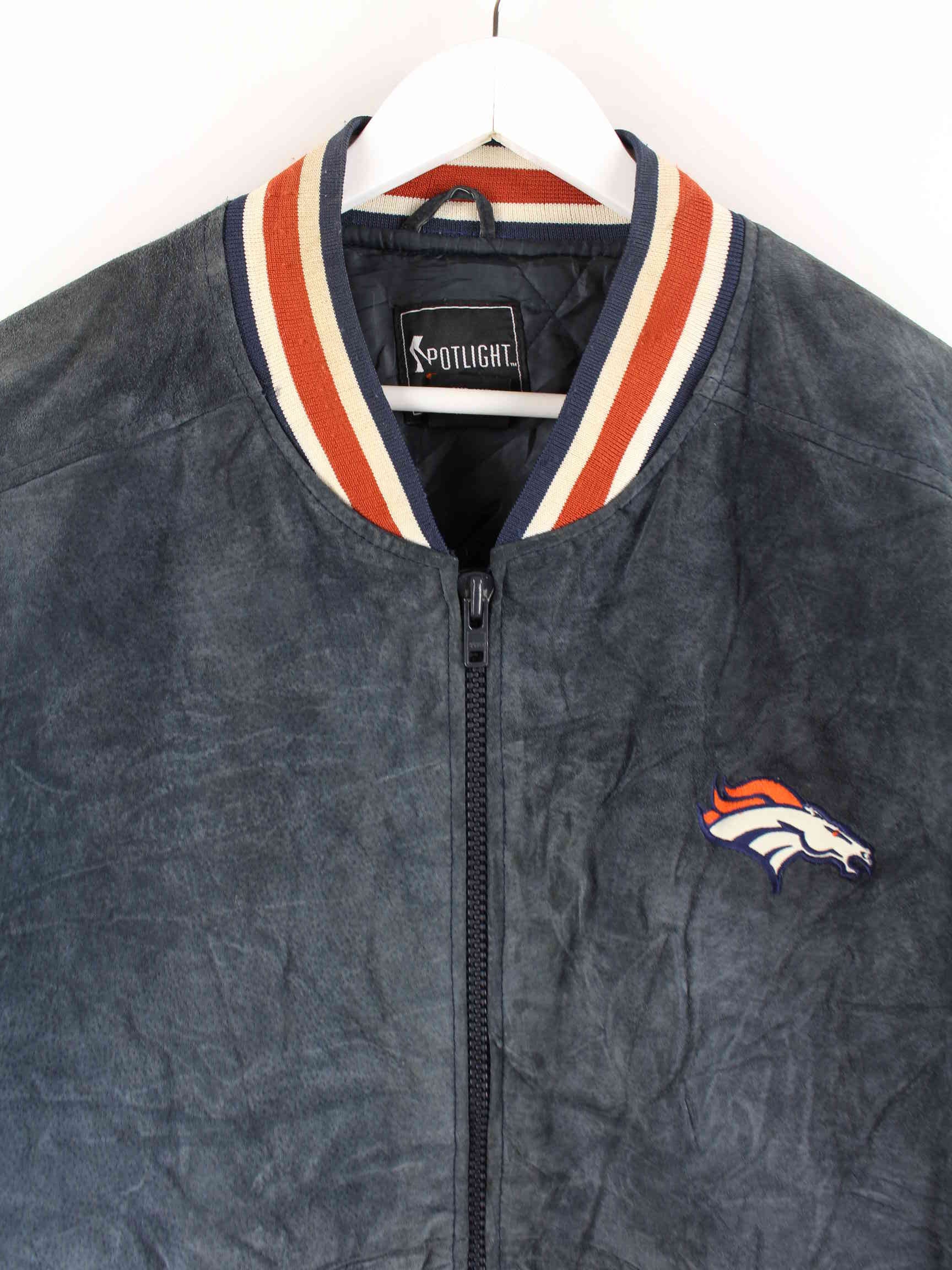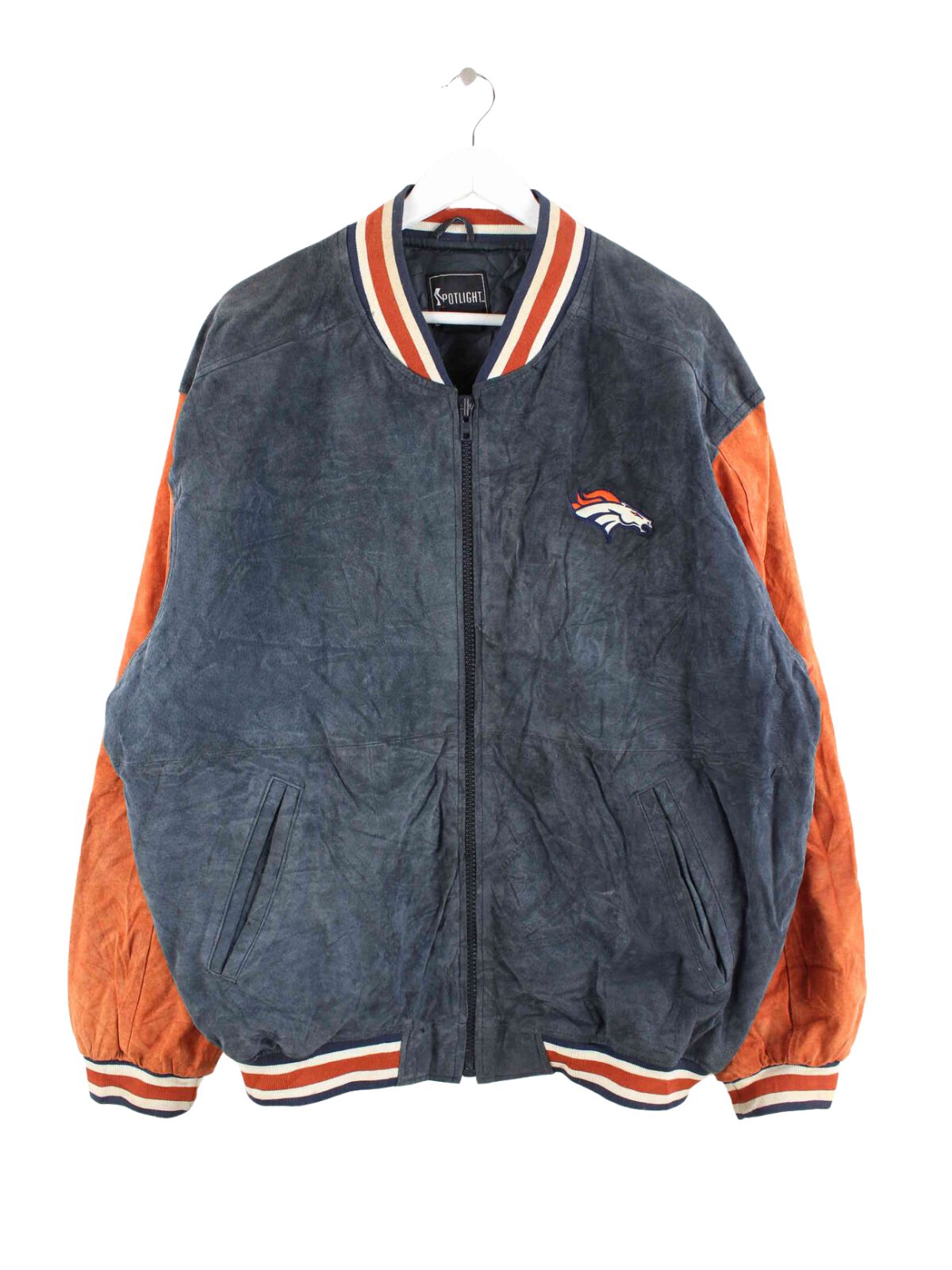 Vintage Denver Broncos Leder College Jacke Blau XL