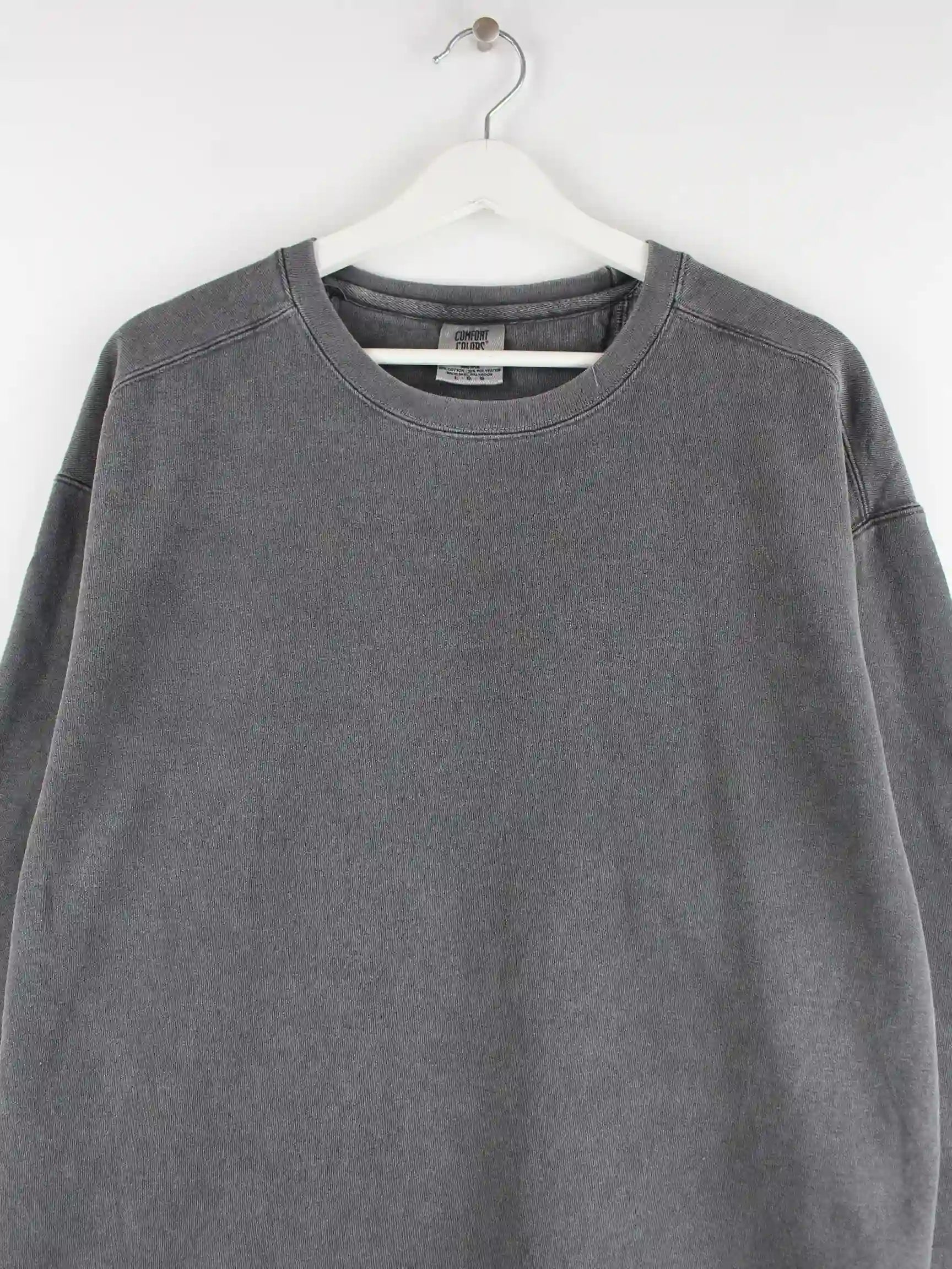 Vintage Sweater in Größe L. Er ist aus einer Baumwollmischung und in Grau lieferbar. Mit tollem Running Print.