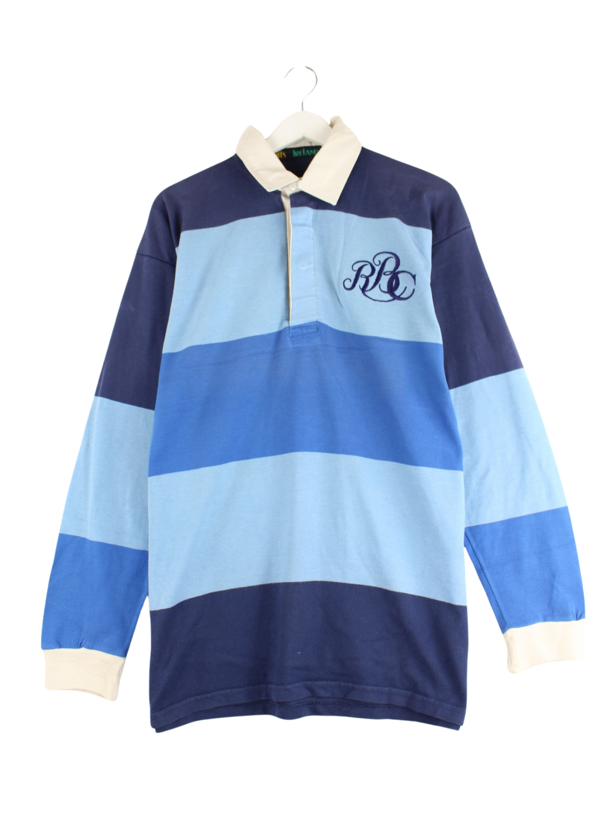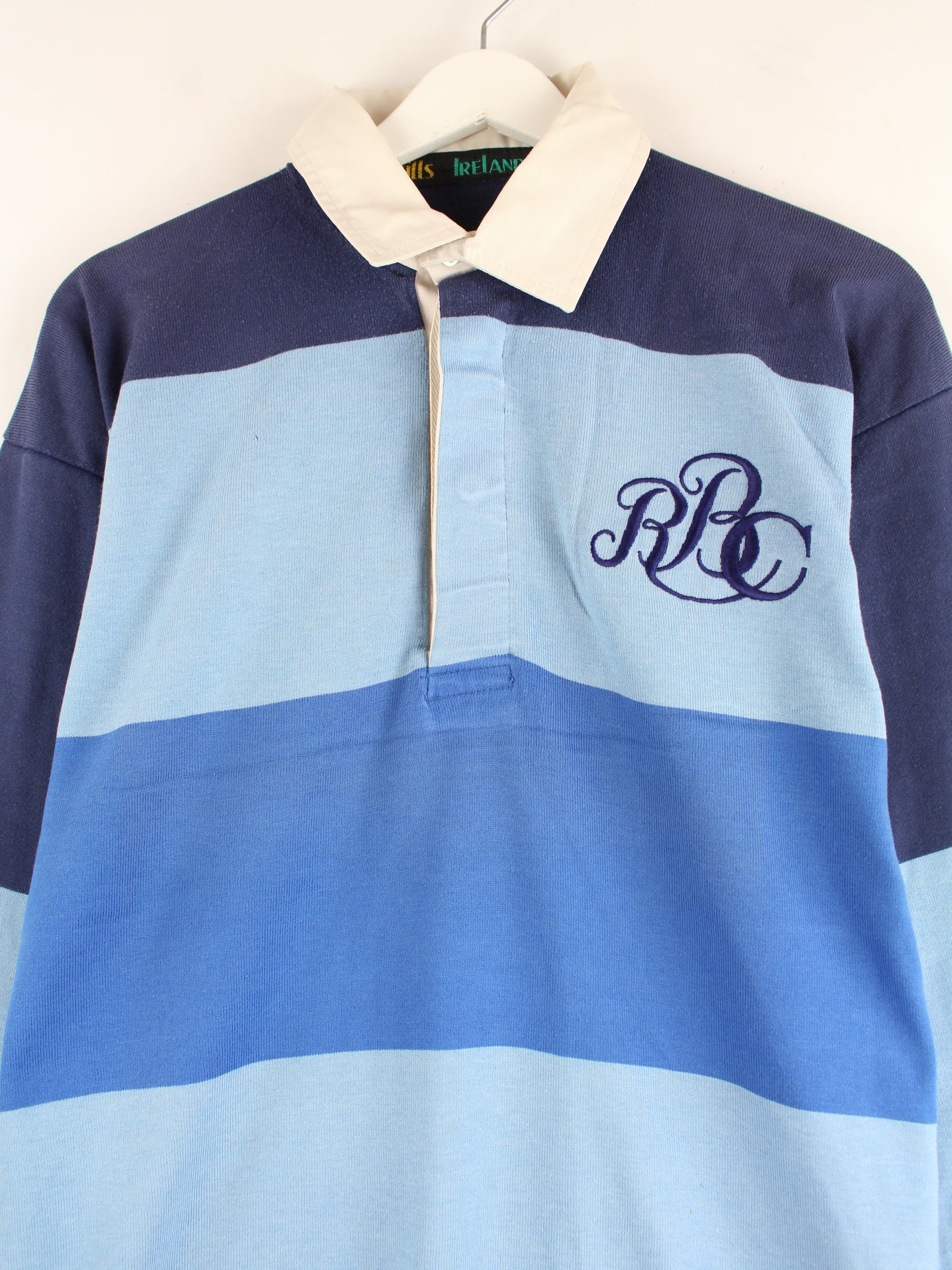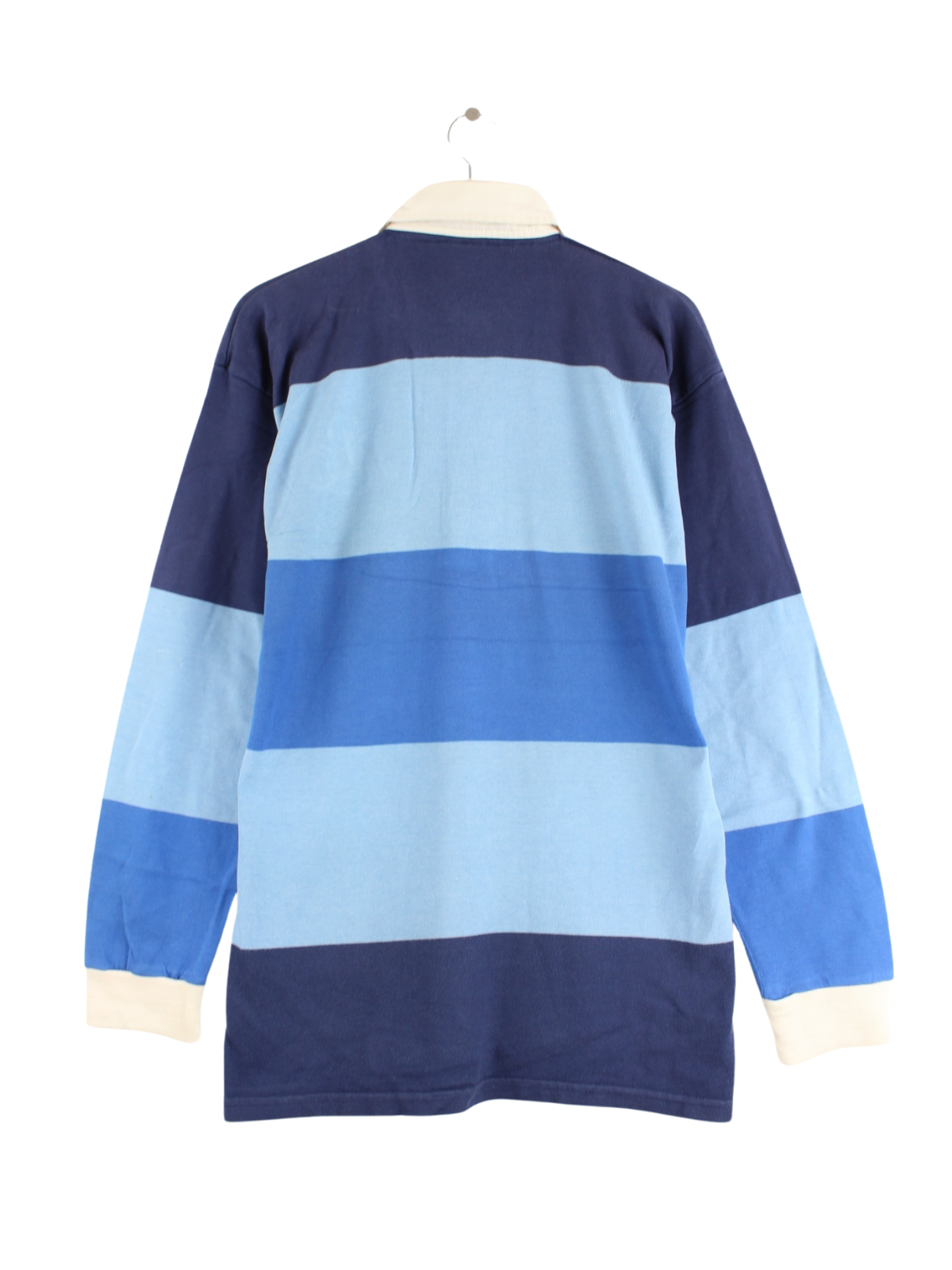 Vintage 90s Embroidered Striped Ireland Rugby Langarm Polo Blau L