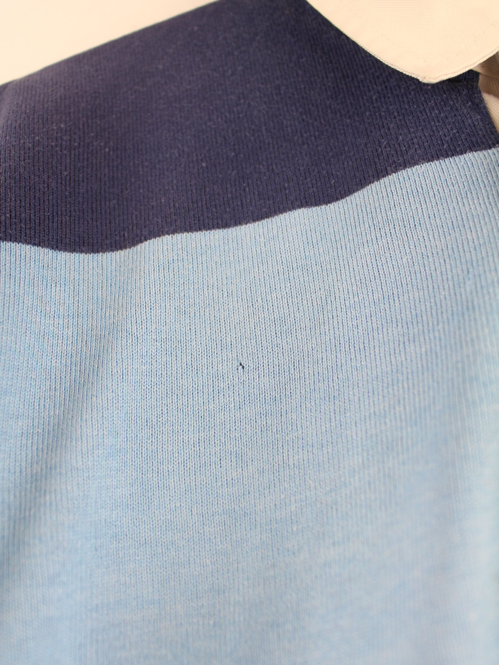 Blaues Vintage Poloshirt mit Stickereien in Größe L. Es ist aus Baumwolle gefertigt und in gutem Zustand lieferbar.