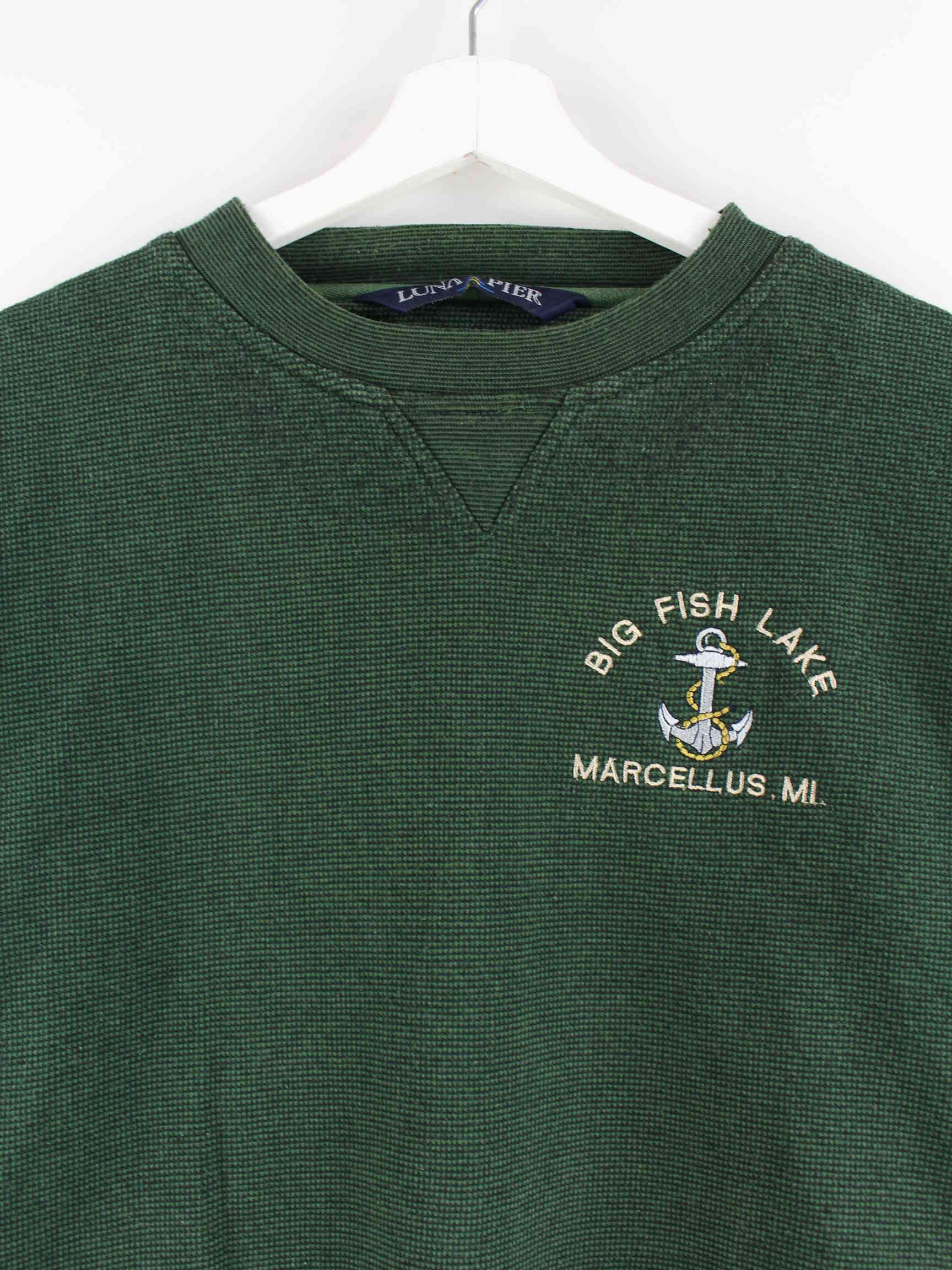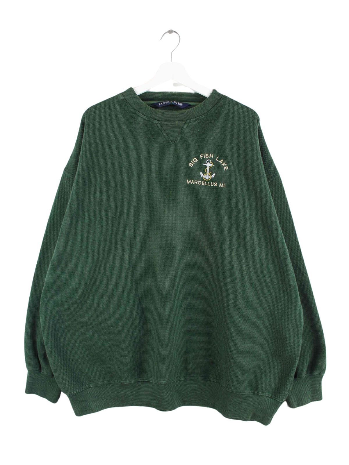 Vintage Sweater mit gestickten Mustern in Größe 3XL. Er ist aus einer Baumwollmischung gemacht und in Grün on Stock.
