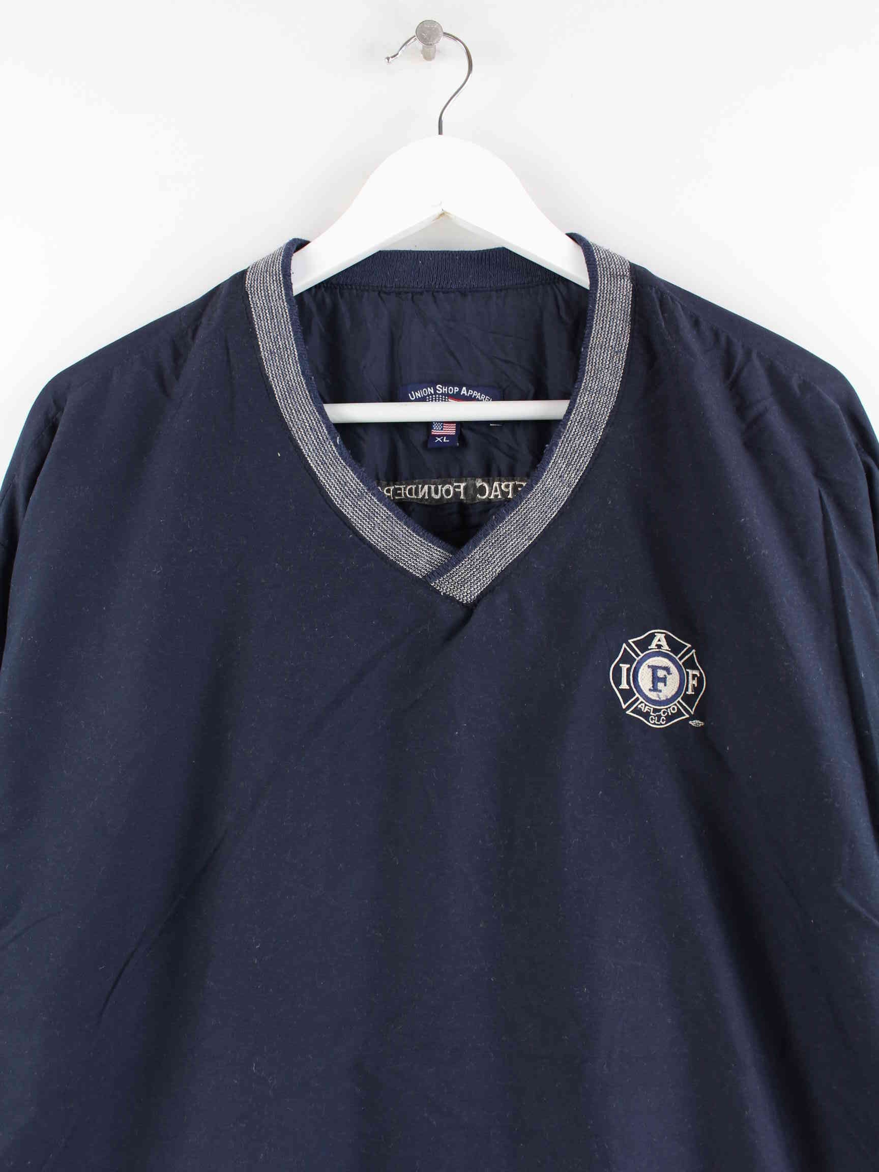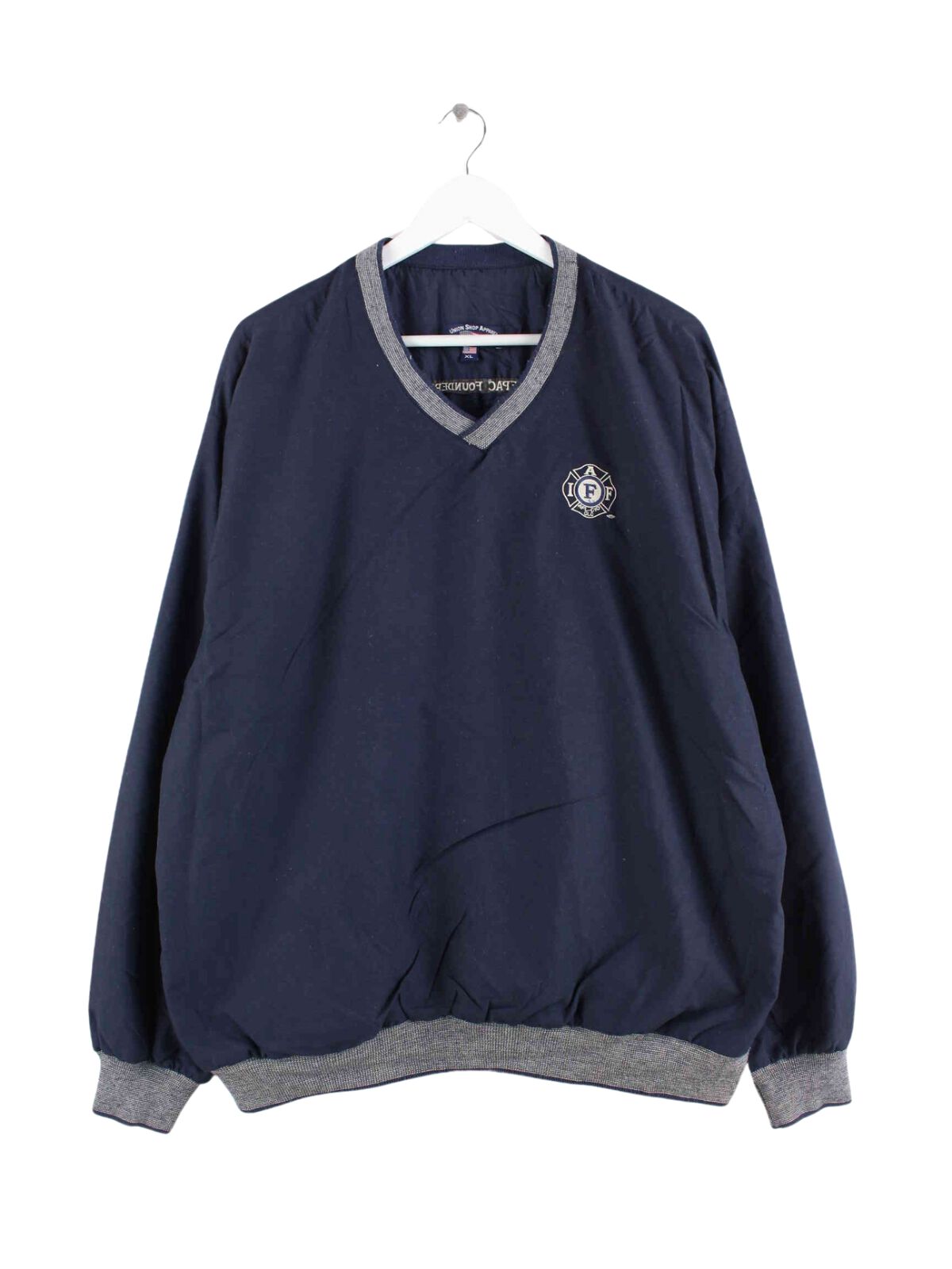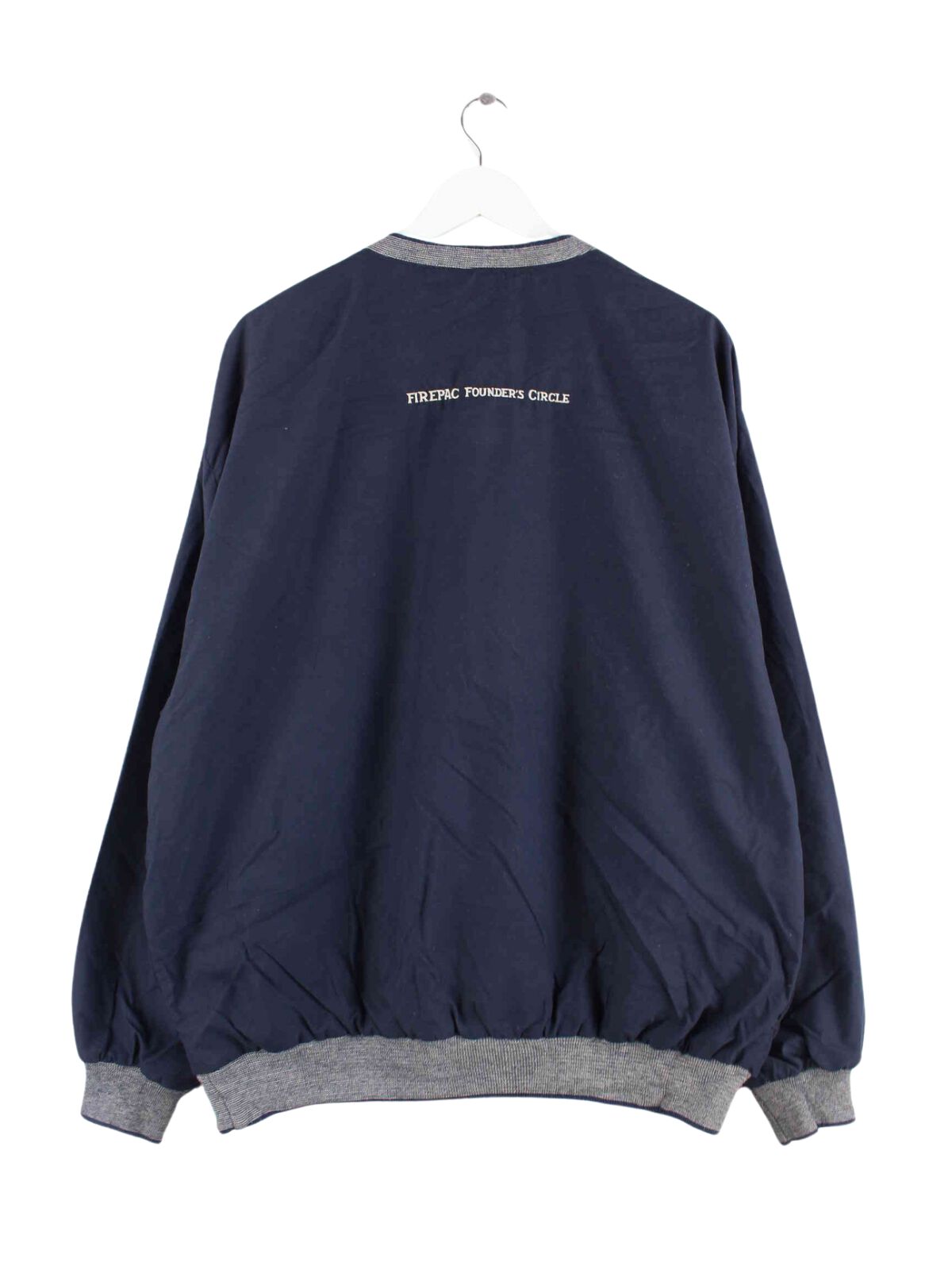 Vintage Sweater mit gestickten Mustern in Größe XL. Er ist aus Synthetik angefertigt und in Blau on Stock.