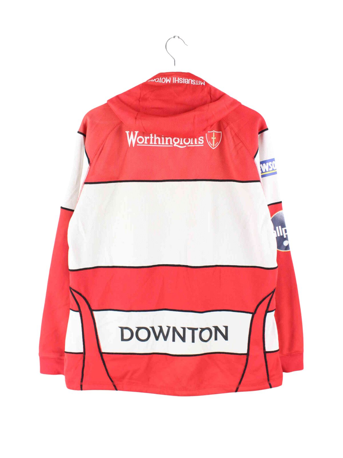 Roter Vintage Hoodie in Größe M. Er ist aus Synthetik produziert und in gutem Zustand in Stock.