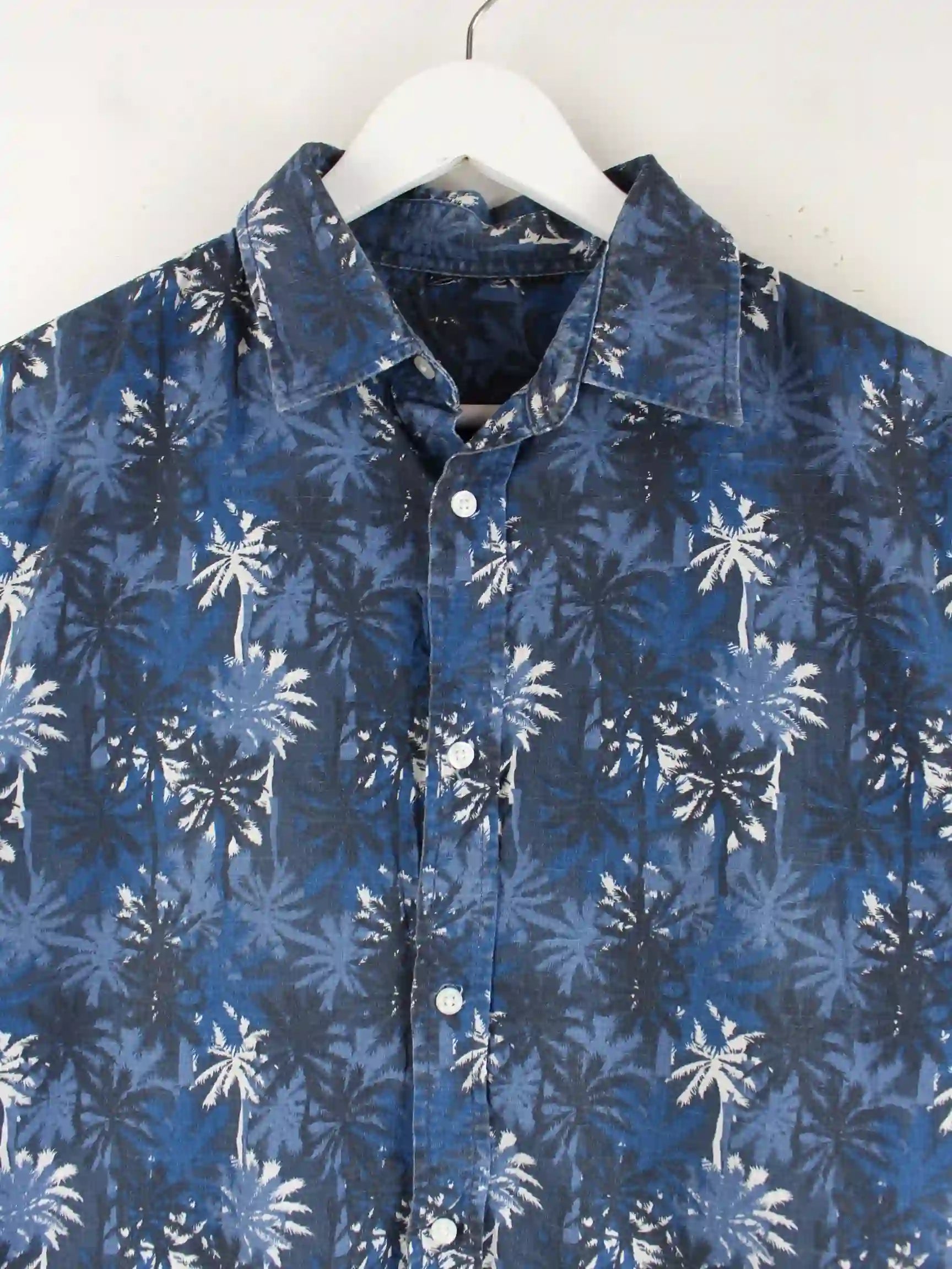 Vintage Freizeit Hemd in Größe M. Es ist aus Baumwolle angefertigt und in Blau auf Lager.