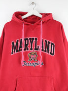 Vintage Hoodie in Größe L. Er ist aus einer Baumwollmischung gefertigt und in Rot vorrätig.