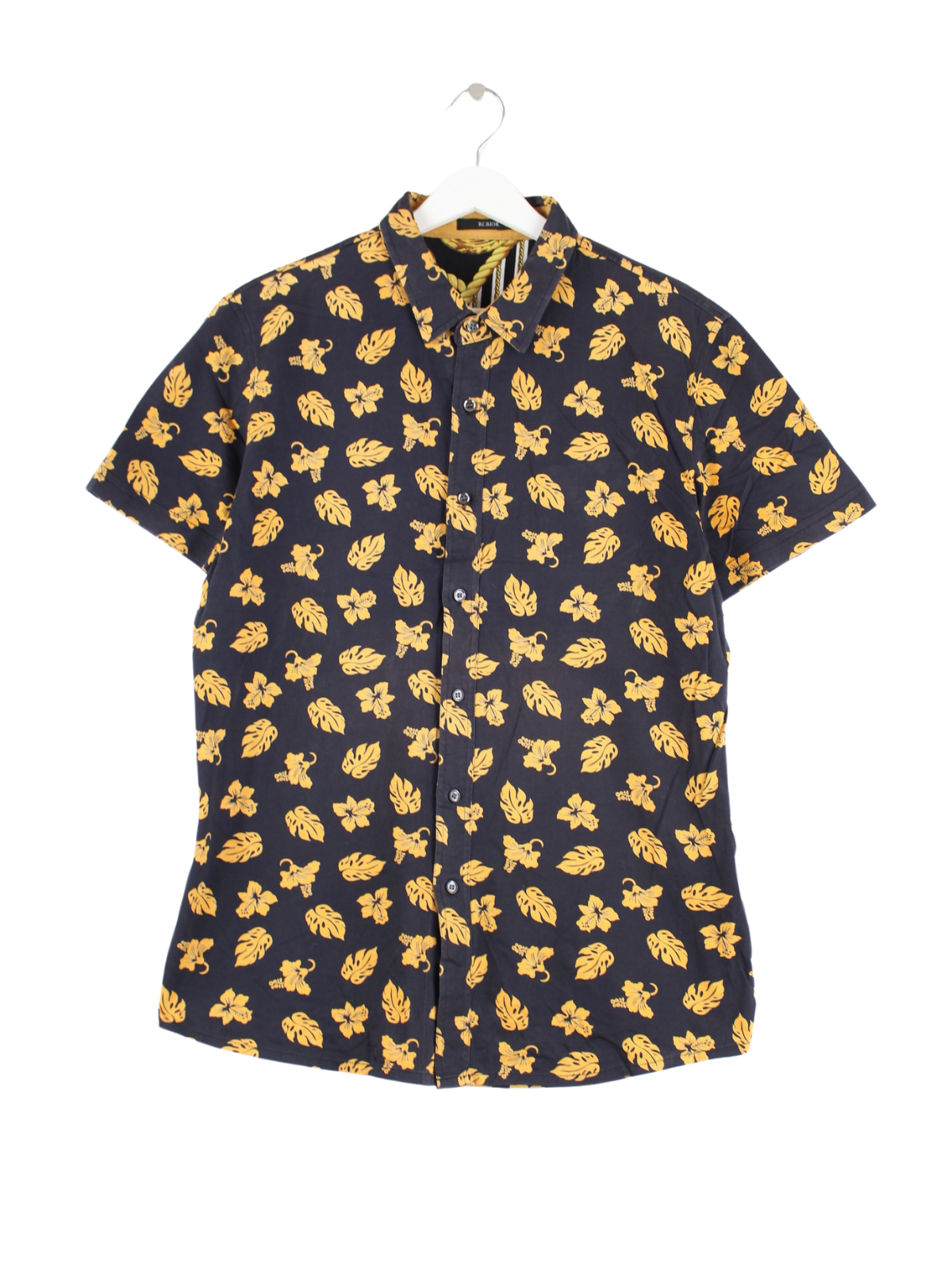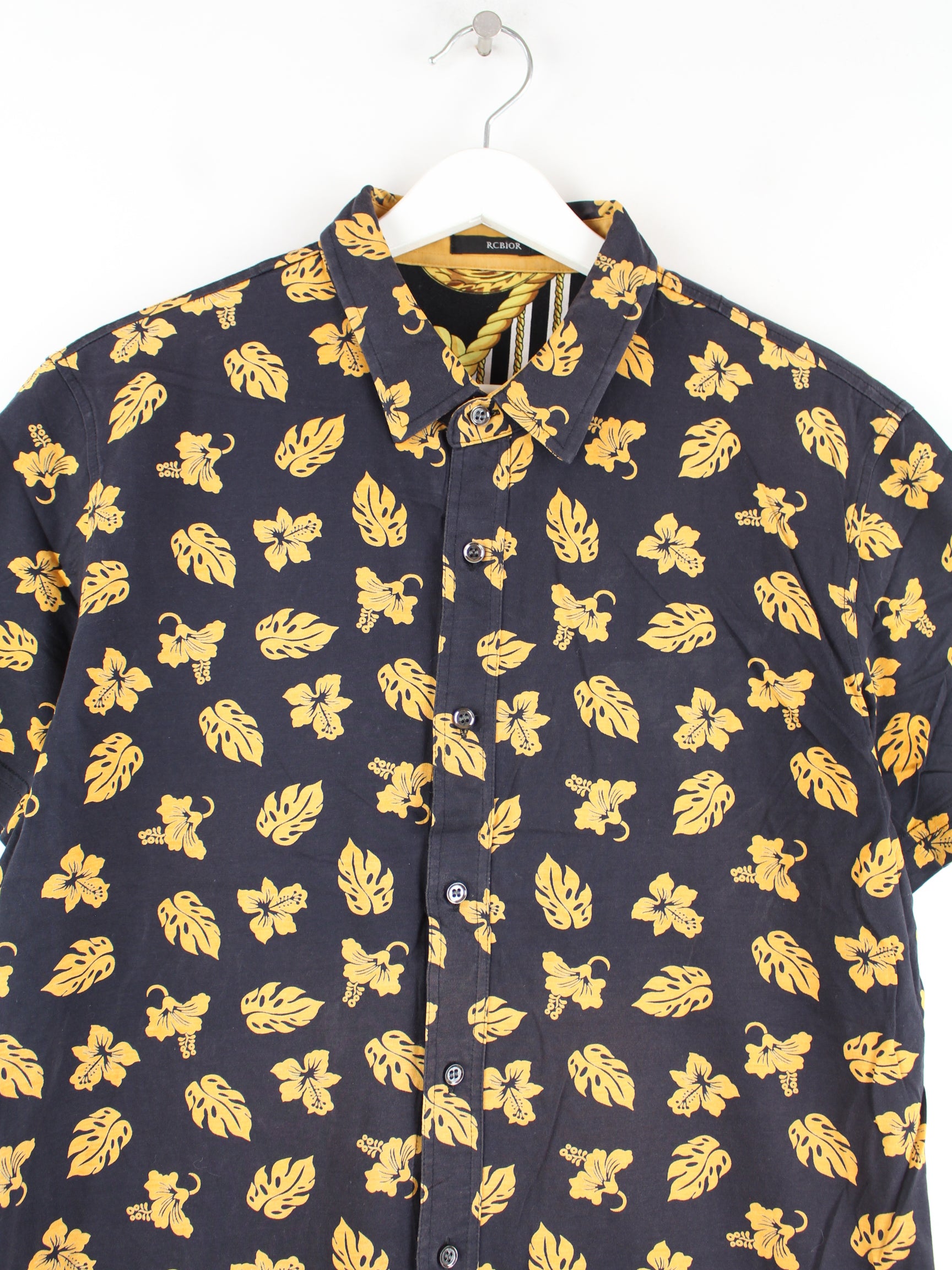Vintage Pattern Kurzarm Hemd Schwarz S