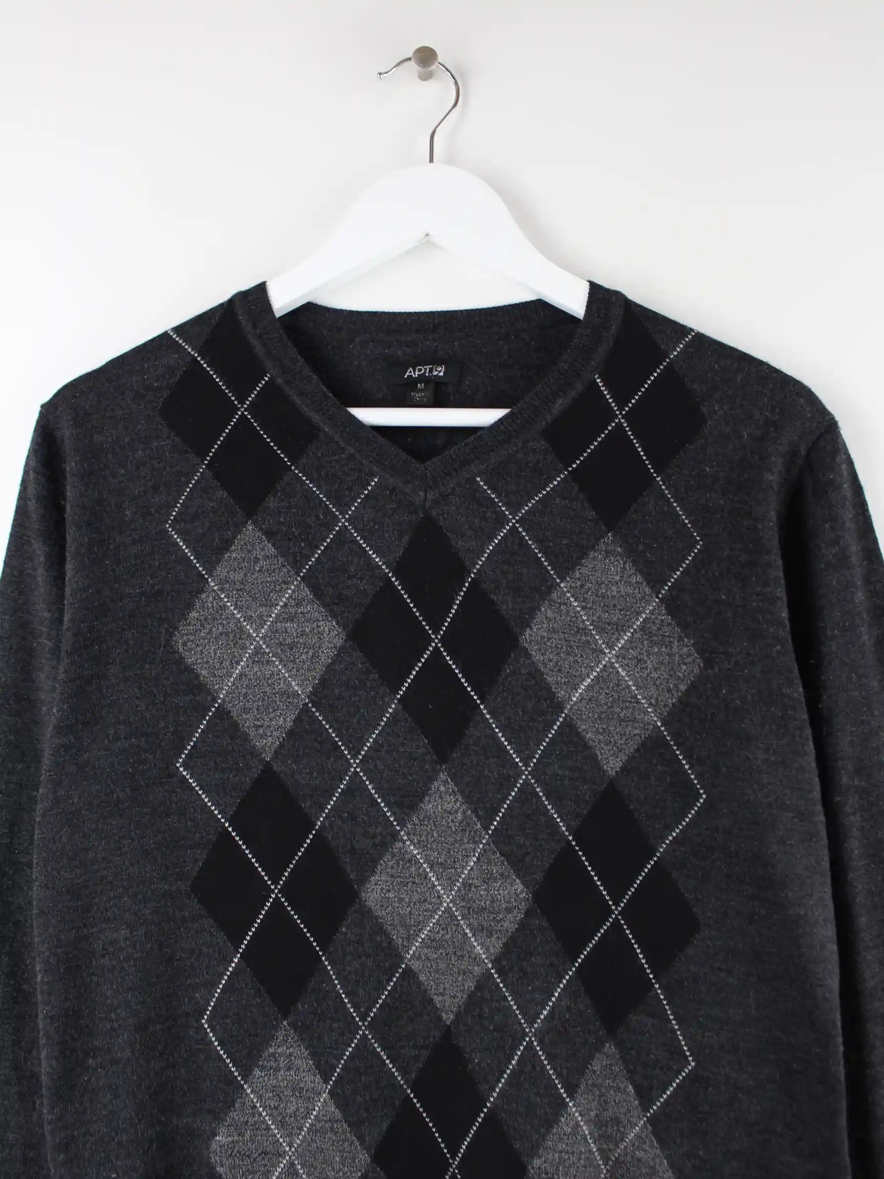 Grauer Vintage Pullover in Größe M. Er ist aus Baumwolle gefertigt und in sehr gutem Zustand auf Lager.