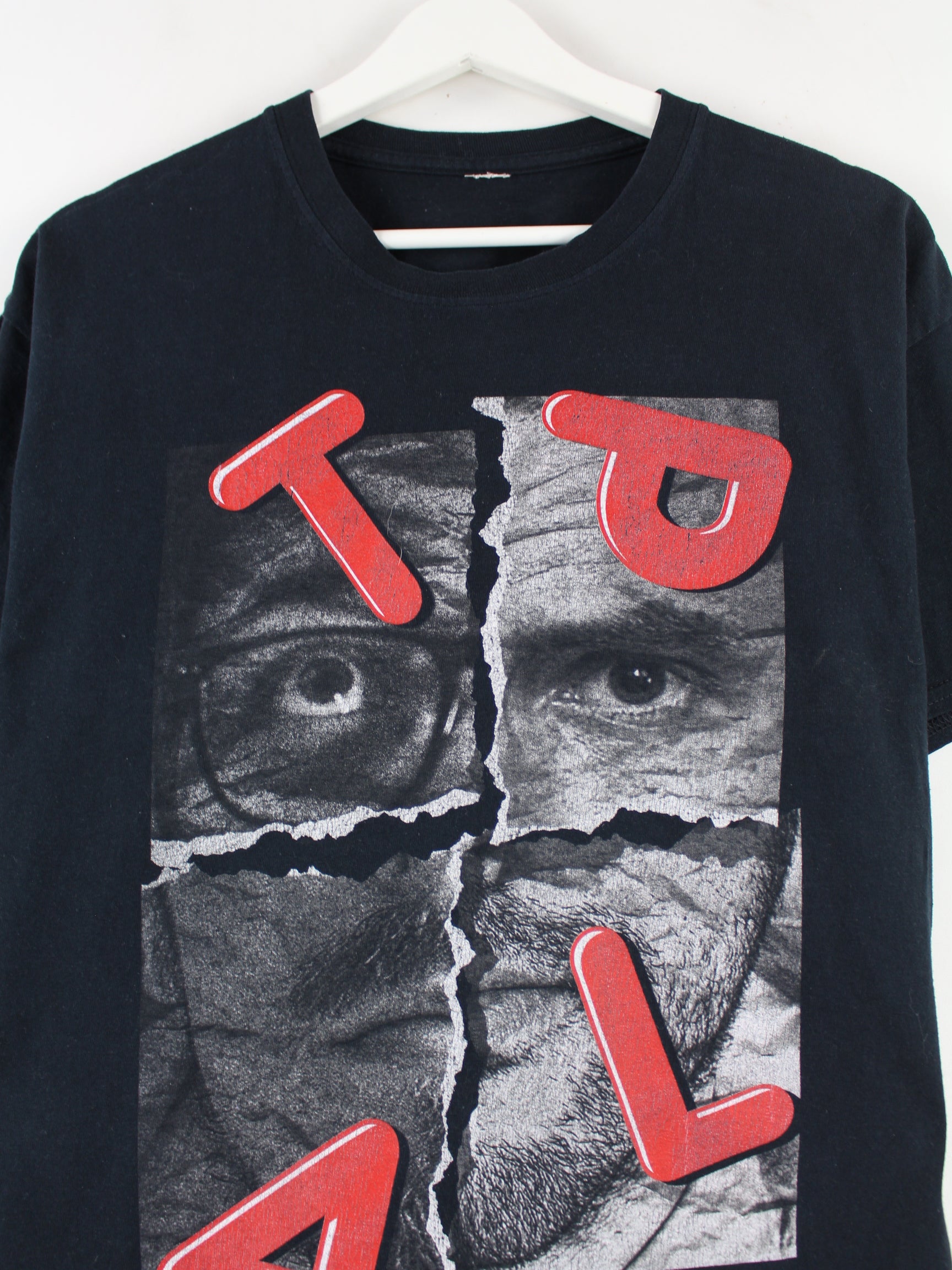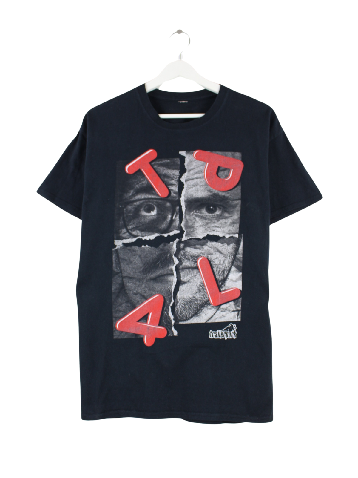 Blaues Vintage T-Shirt in Größe L. Es ist aus Baumwolle angefertigt und in sehr gutem Zustand im Bestand. Mit chiquem Trailerpark Print.
