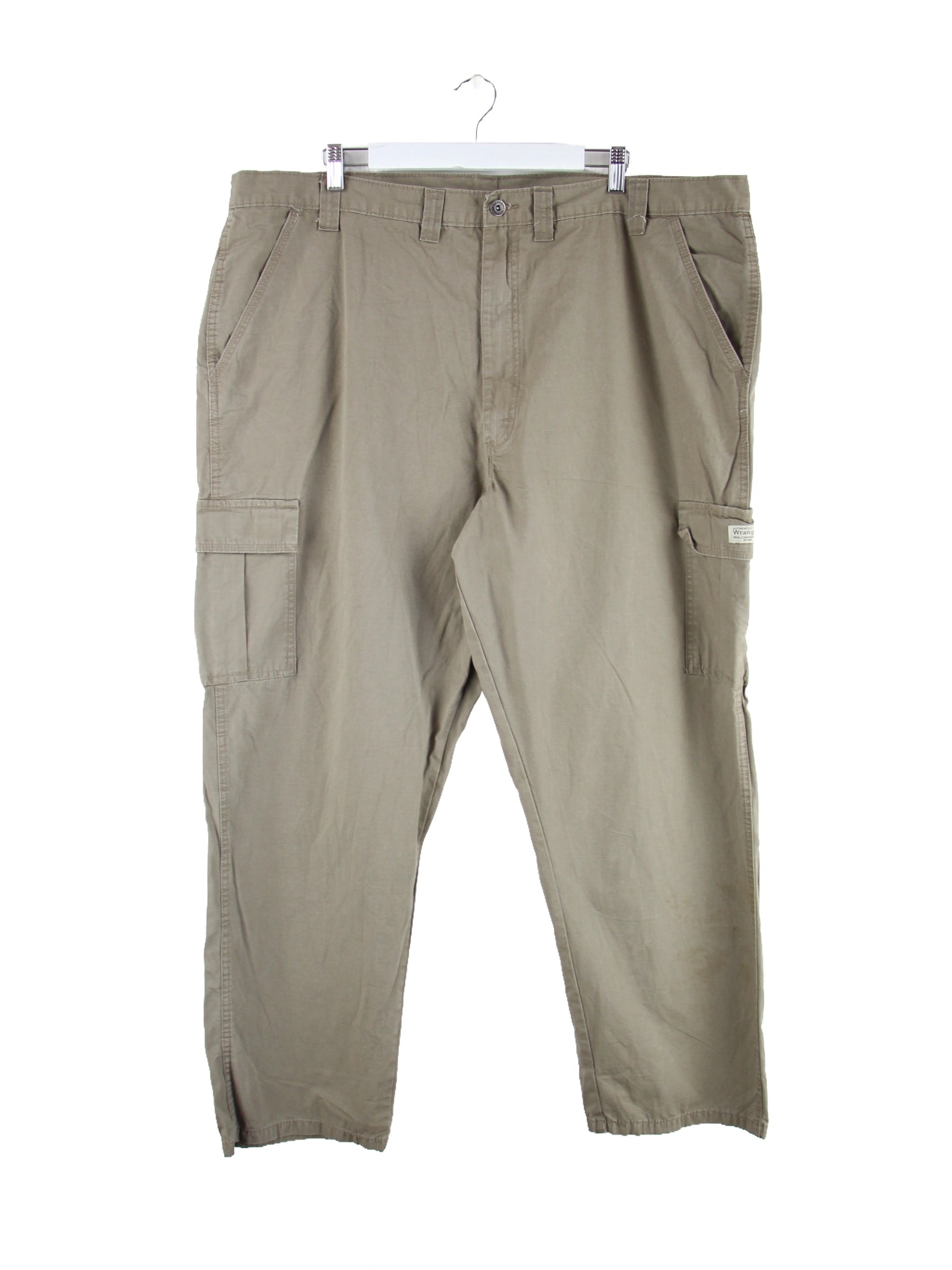 Grüne Wrangler Hose in W44 x L30 aus Baumwolle. Den Zustand würden wir als 'In Ordnung' bezeichnen (vergl. Bilder).