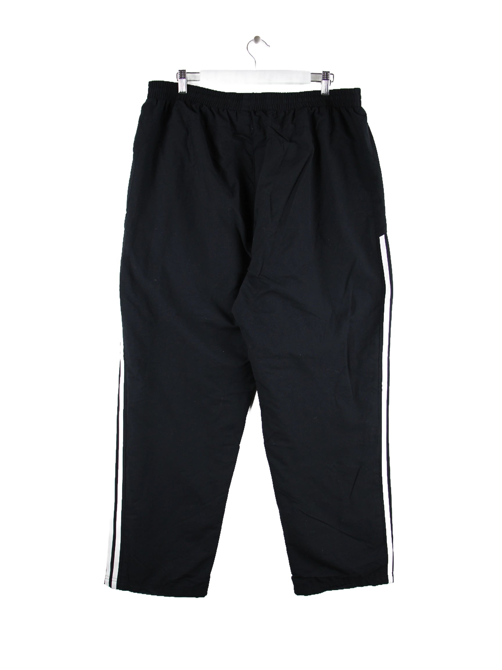 Schwarze Track Pants der Brand Adidas in Größe XXL. Sie sind aus Synthetik und in gutem Zustand zu haben.
