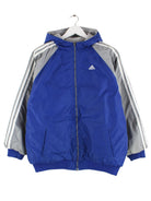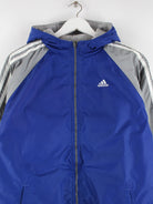 Jacke der Brand Adidas in Größe XS. Sie ist aus Synthetik hergestellt und in Blau zu haben.