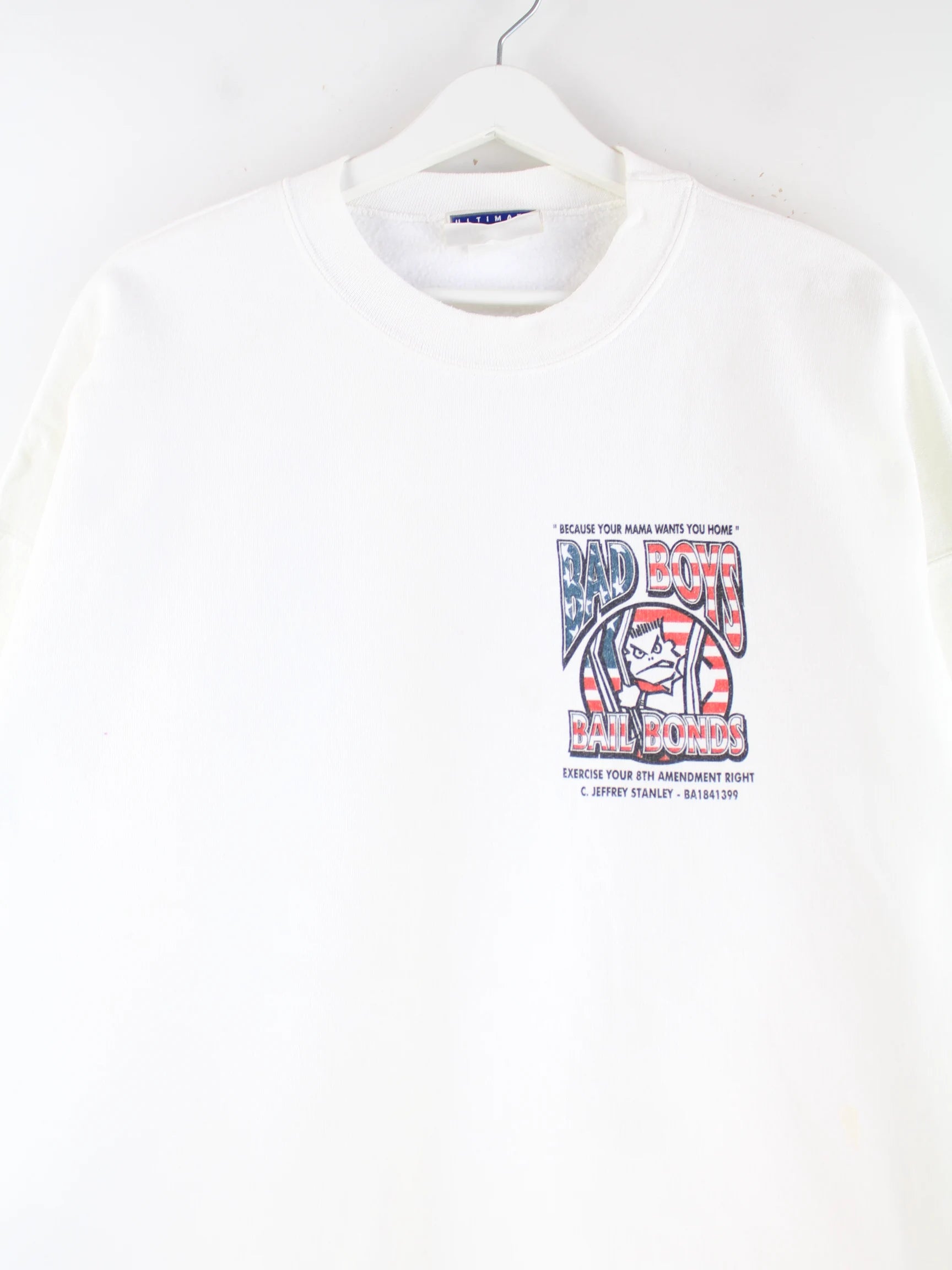 Hanes 90s Vintage Bad Boys Print Heavy Sweater Weiß XXL