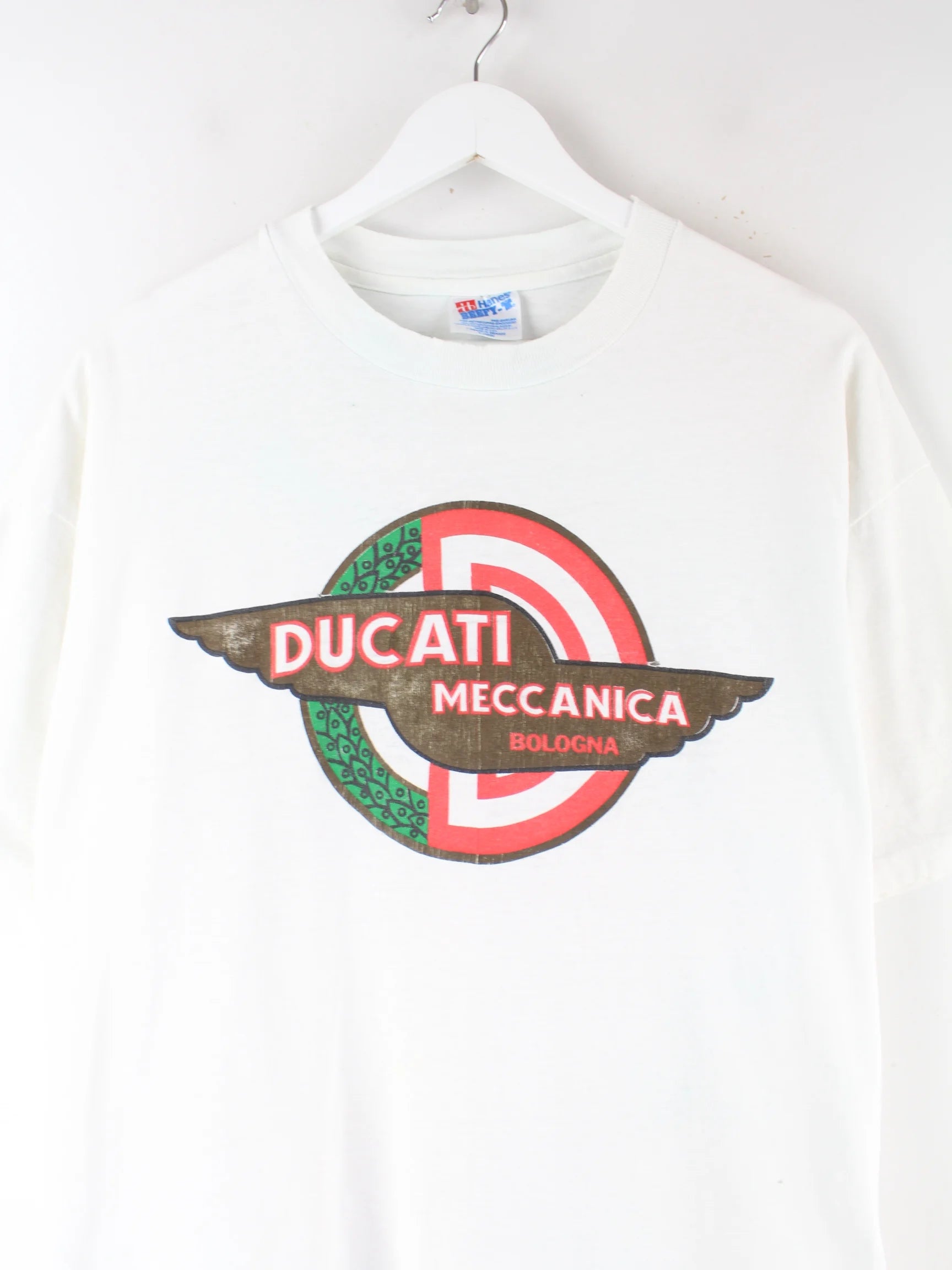 Hanes 90s Ducati Print Single Stitch T-Shirt Weiß XL