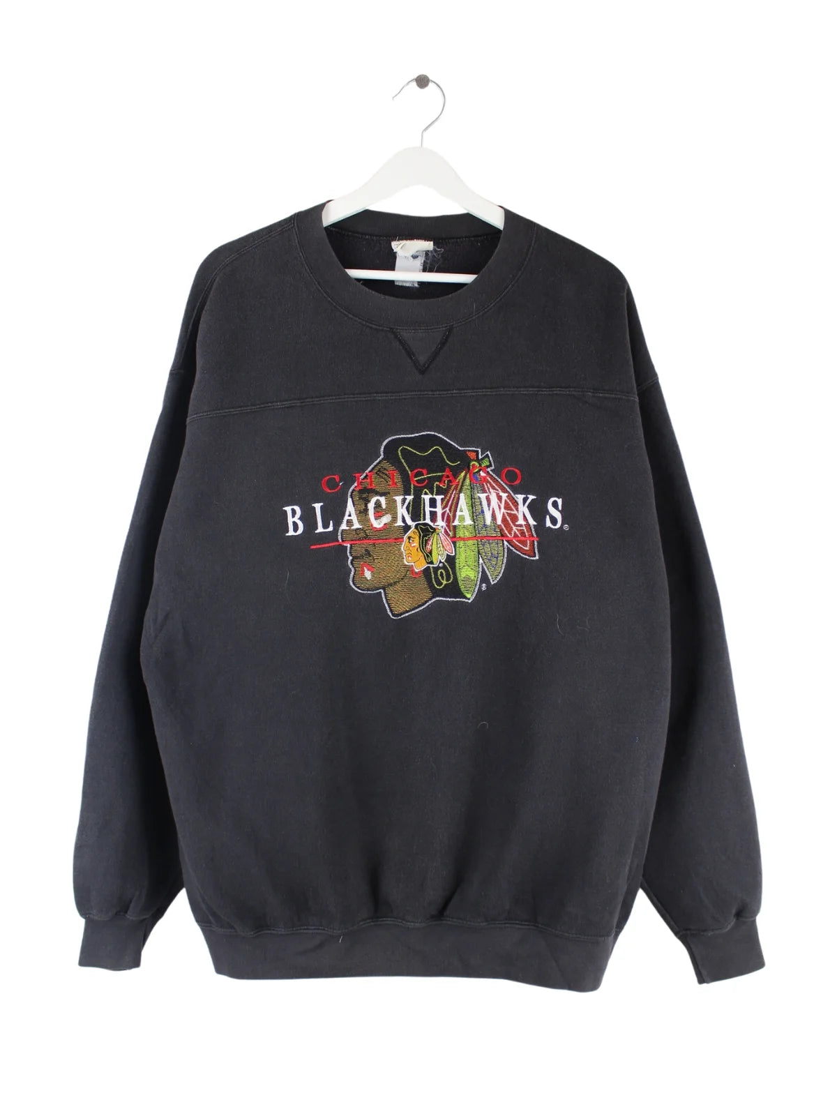 Lee 90s Vintage Chichago Blackhawks Print Sweater Schwarz XL
