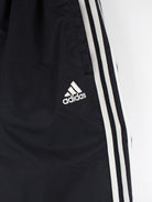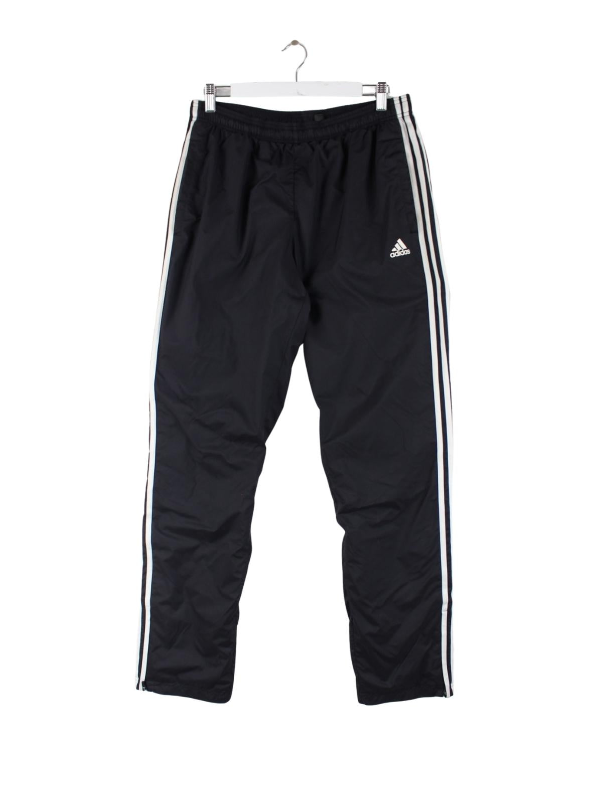 Track Pants aus dem Hause Adidas in Größe L. Sie sind aus Synthetik produziert und in Schwarz auf Lager.