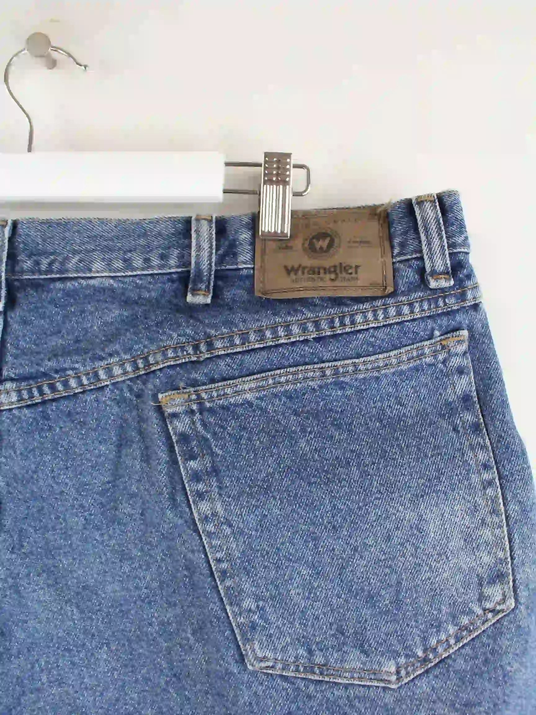 Blaue Shorts von Wrangler in Größe W42. Sie sind aus Baumwolle produziert. Den Zustand würden wir als 'In Ordnung' bezeichnen (vergl. Bilder).