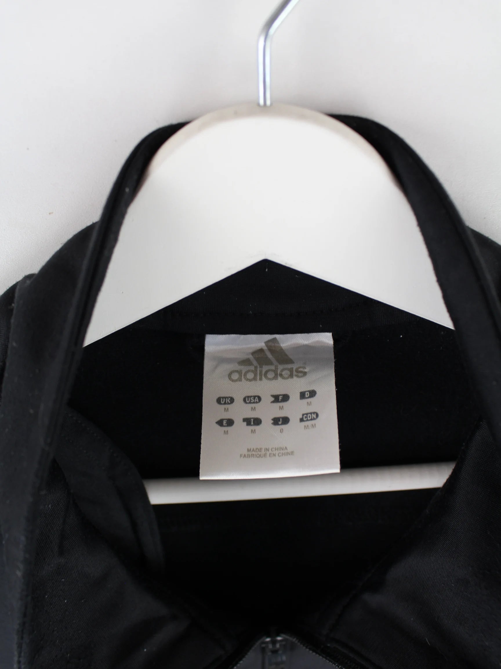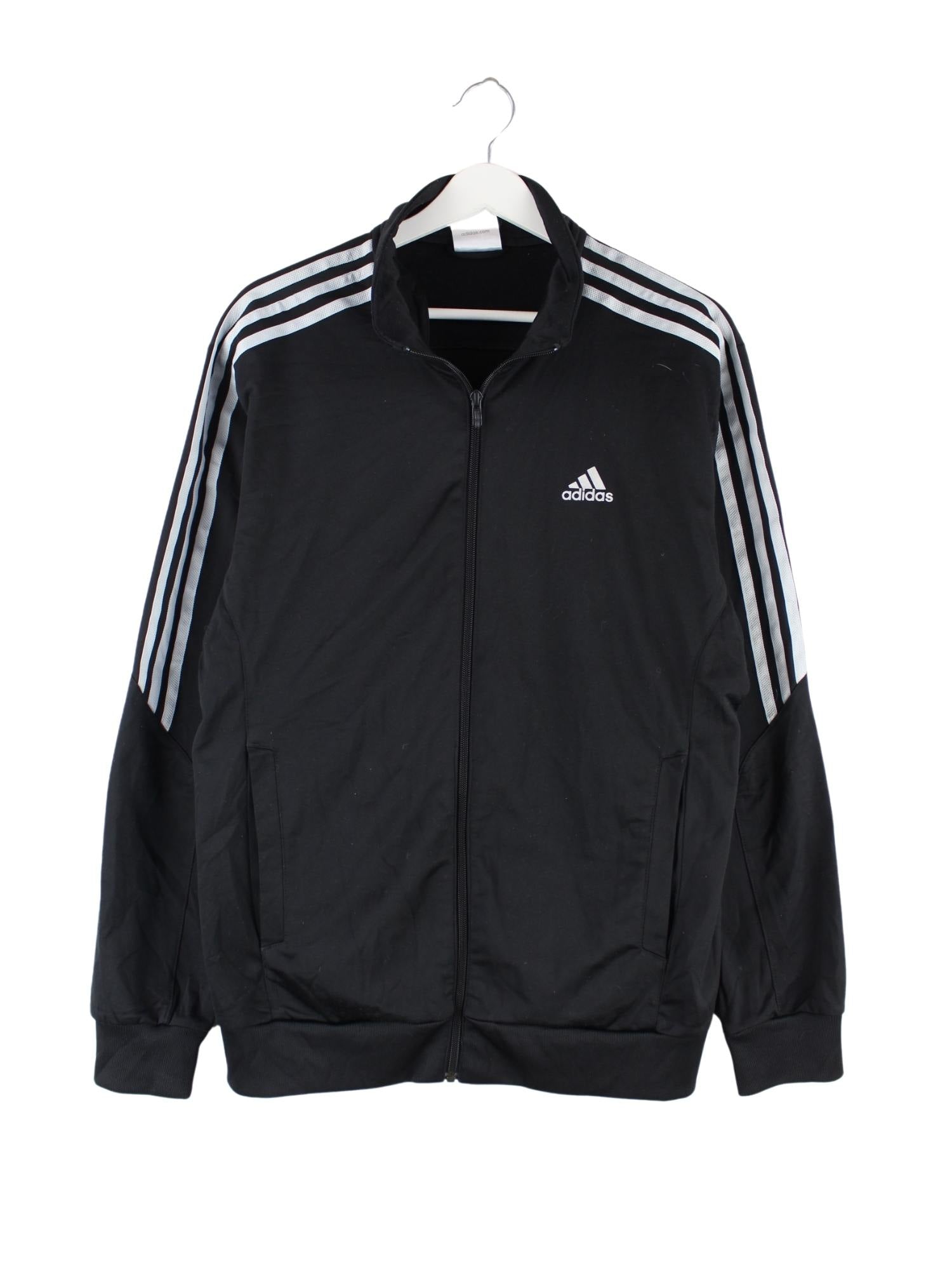 Schwarze Trainingsjacke vom Brand Adidas in Größe M. Sie ist aus Synthetik hergestellt und in sehr gutem Zustand in Stock.