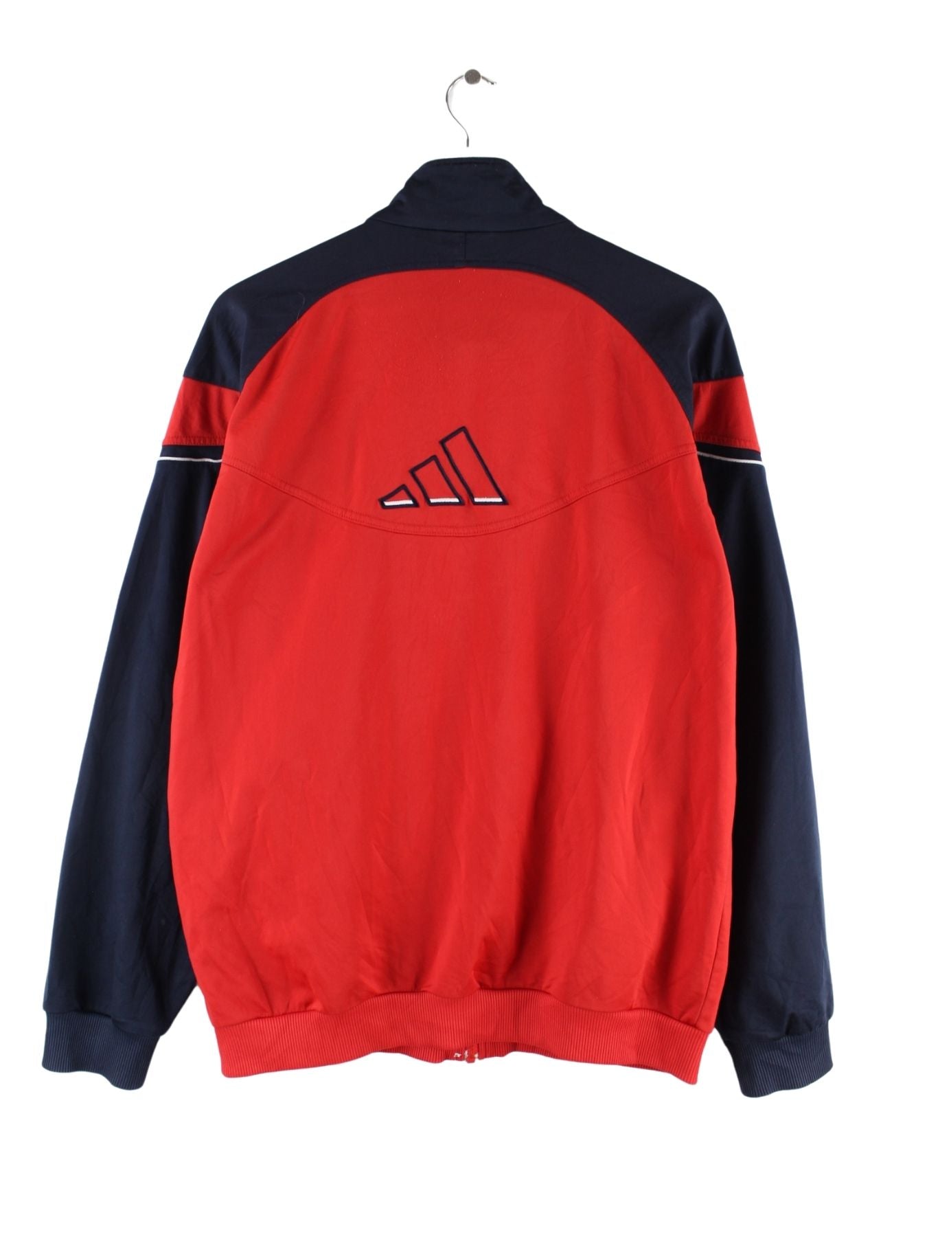 Rote Trainingsjacke mit Stick vom Brand Adidas in Größe XXL. Sie ist aus Synthetik gemacht und in sehr gutem Zustand im Bestand.