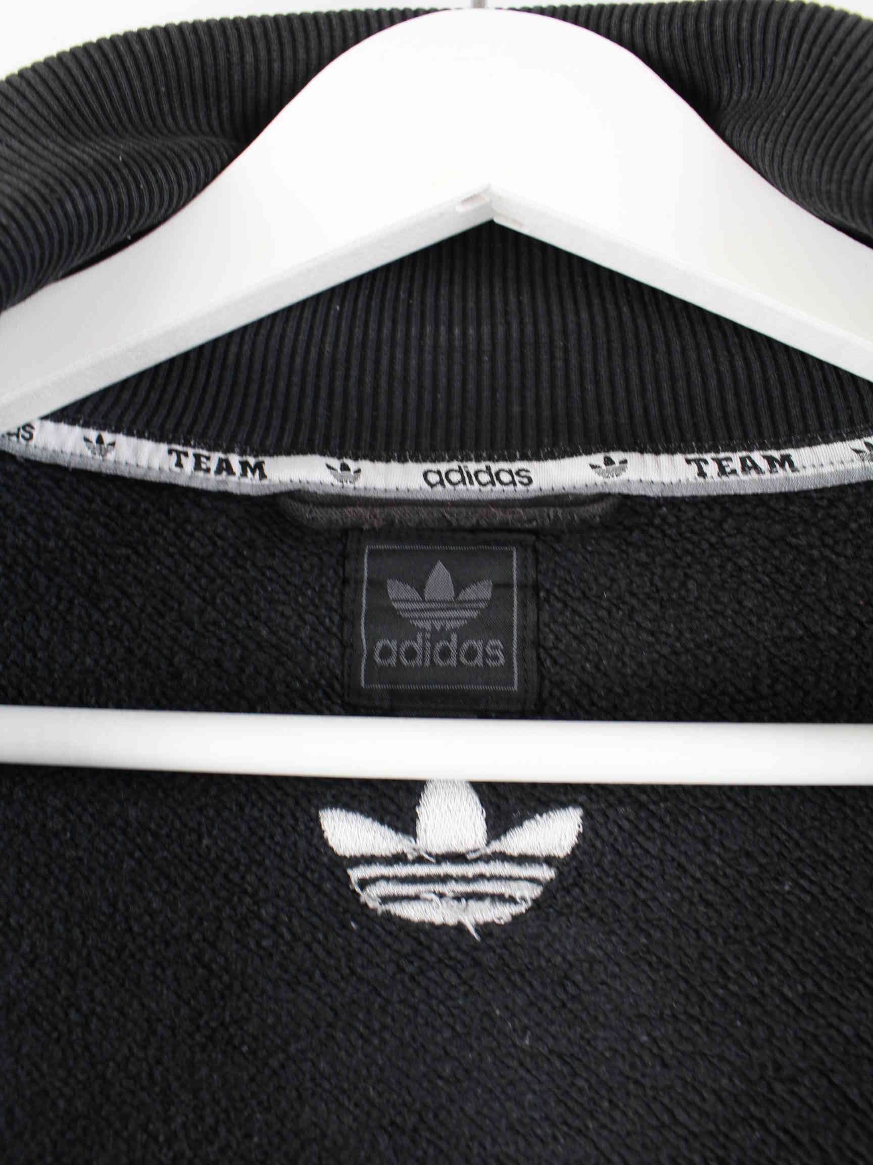 Schwarze Sweatjacke vom Label Adidas aus Anfang der 2000'er in Größe XXL. Sie ist aus einer Baumwollmischung gemacht und in gutem Zustand zu haben.