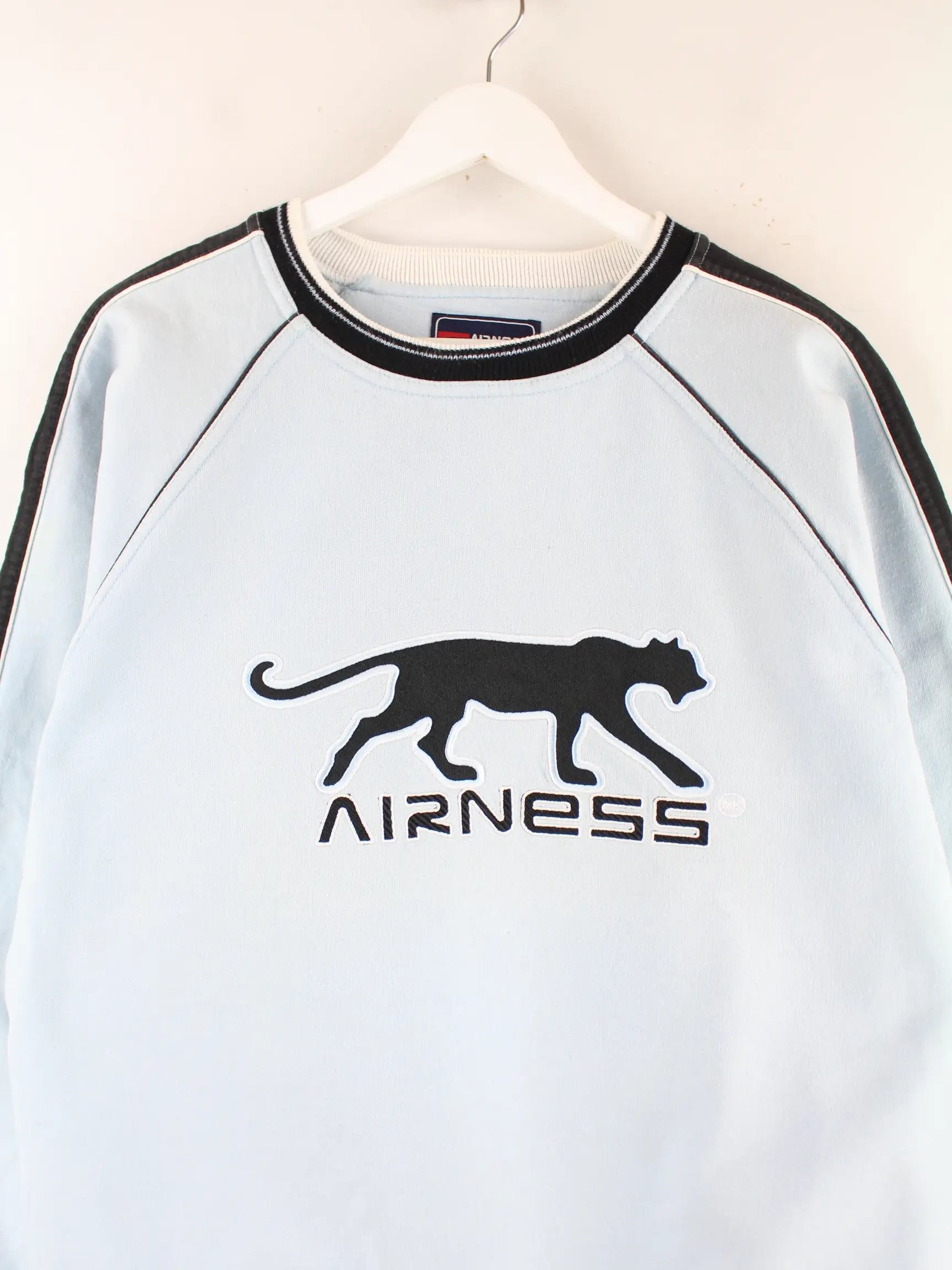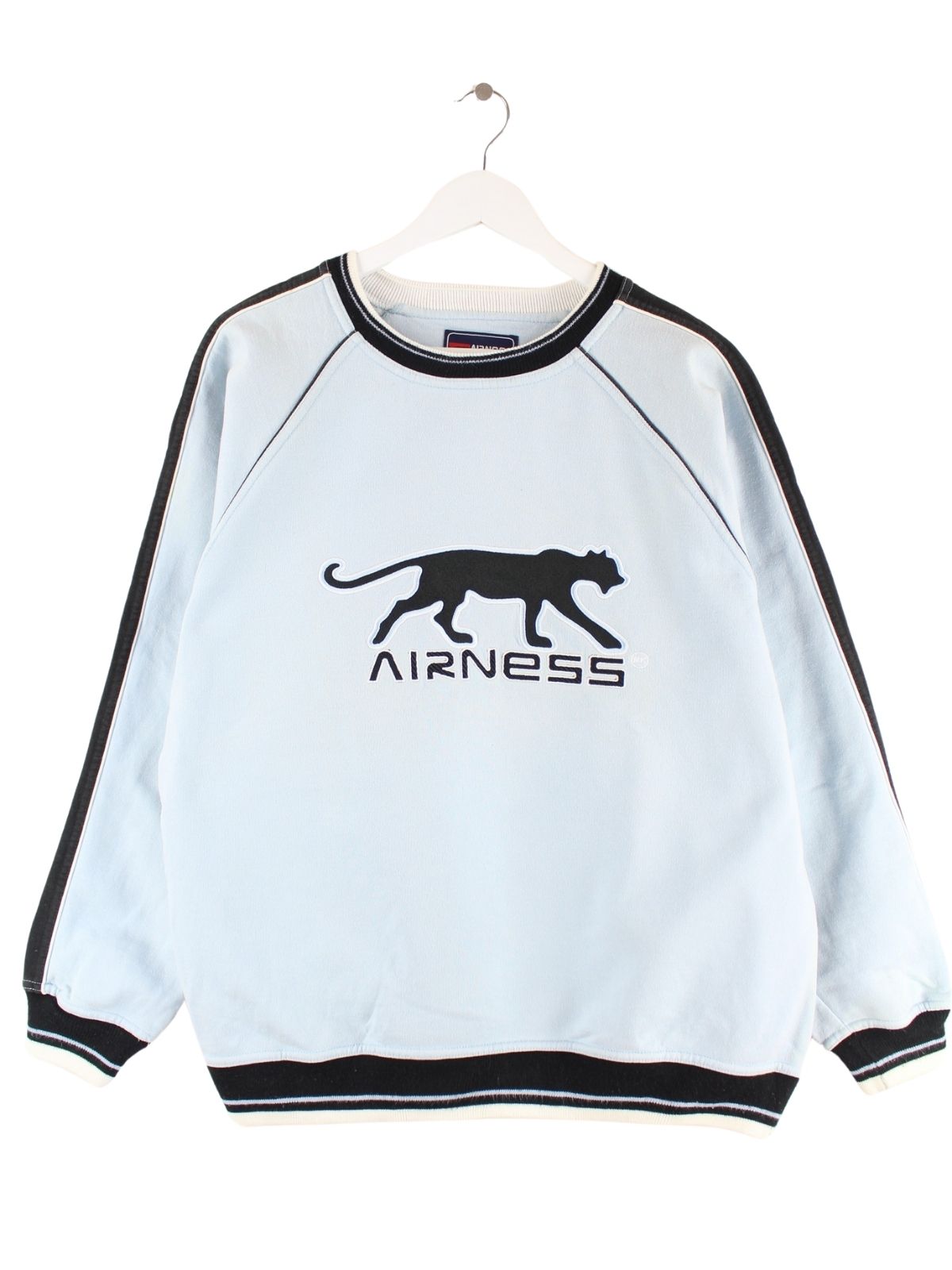 Blauer Sweater mit Stick der Marke Airness aus Anfang der 2000'er in Größe M. Er ist aus einer Baumwollmischung und in gutem Zustand bei uns zu bekommen.
