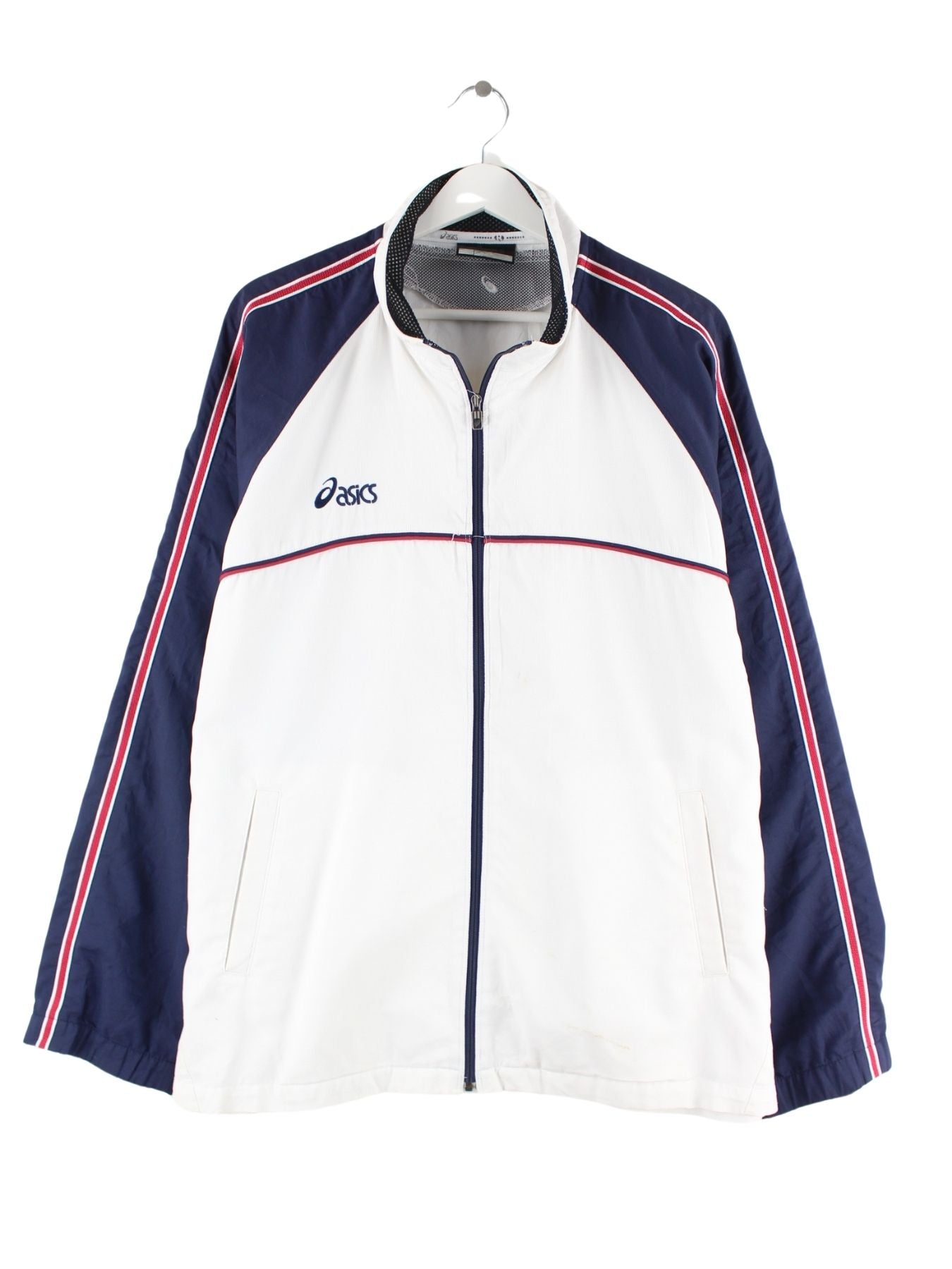 Trainingsjacke der Marke Asics in Größe XL. Sie ist aus Synthetik angefertigt und in Weiß im Angebot.