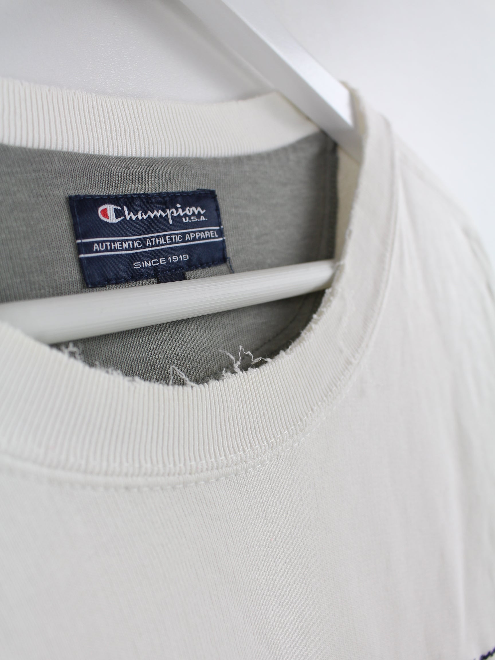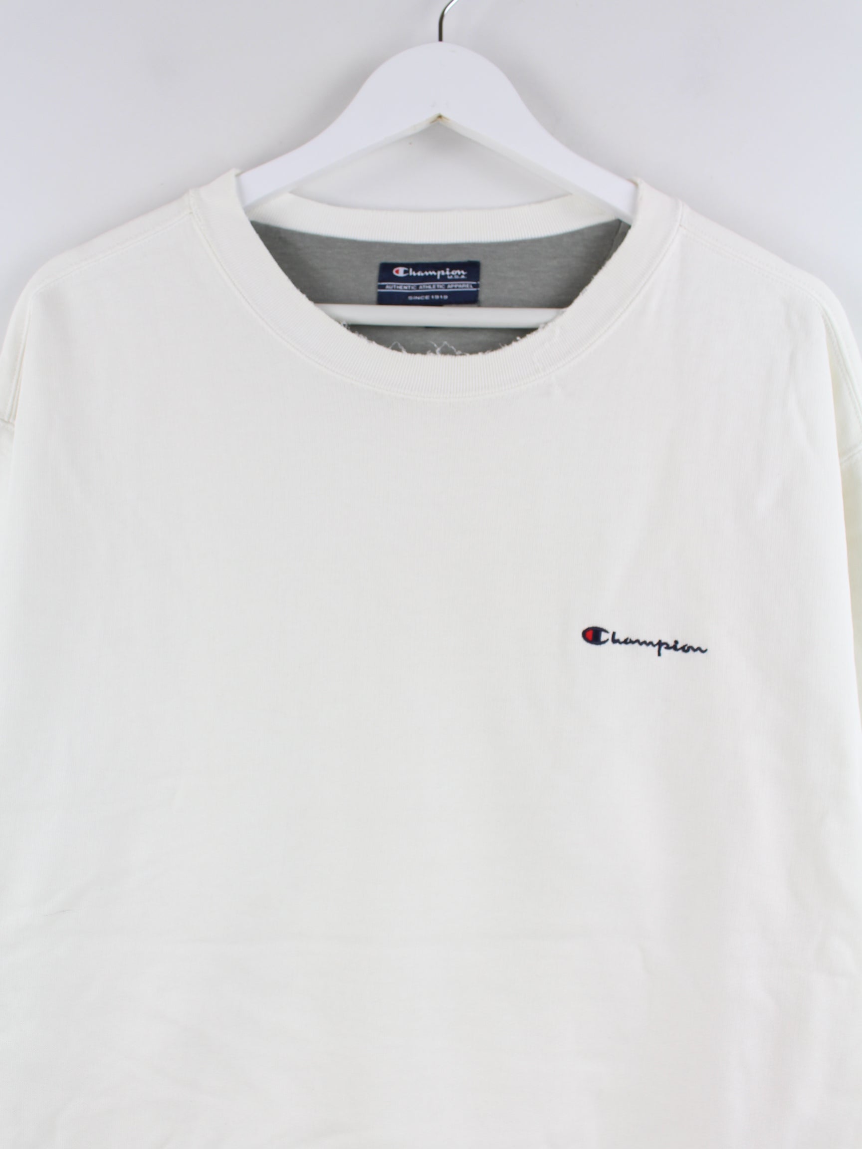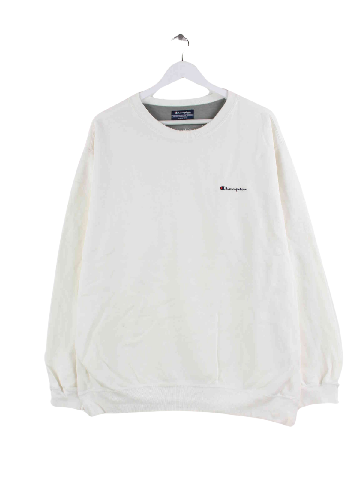 Sweater des Labels Champion in Größe XL aus Anfang der 2000'er. Er ist aus einer Baumwollmischung und in Weiß vorrätig.